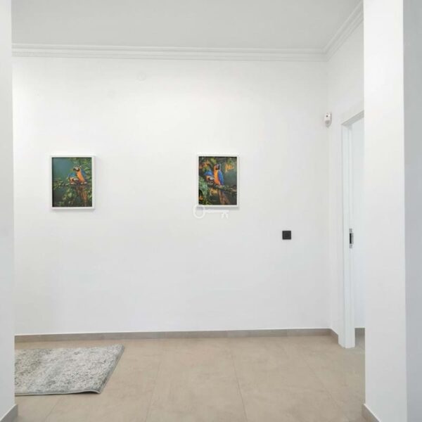 Inside, the main villa features a bright and spacious living area opening onto a large south-facing terraceideal for morning coffee or hosting guests. To the right, a cozy lounge with a fireplace offers a warm ambiance, while a separate TV room on the left makes the space both elegant and functional. This level also includes a guest WC and storage room.