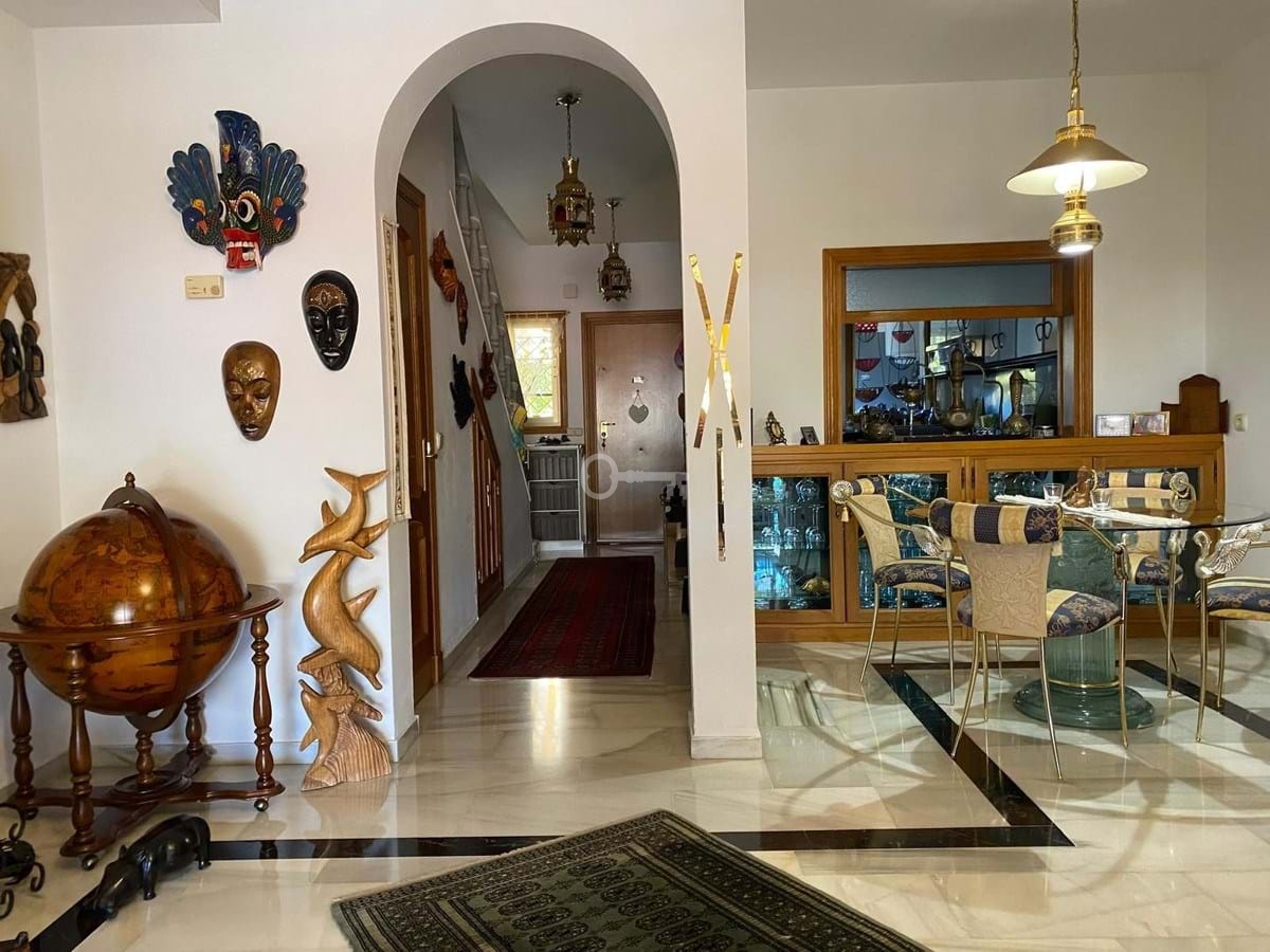 Fantastic semi-detached house in TORREQUEBRADA, in the best area of Benalmádena, in a residential development. Before entering the house, there is a small and charming garden where you can sunbathe in the afternoons. Upon entering, you enter the spacious living room with a marble fireplace that adds style and warmth, perfect for enjoying moments of relaxation. It is connected to the fully equipped kitchen by a serving hatch and a laundry area with a window. There is also a toilet on this same main floor. This home is bright as it faces east and west (morning and afternoon sun). Air conditioning and a heat pump are provided. The living room has access to a covered terrace and connects to another terrace that leads down via a staircase, where you can relax, sunbathe, and enjoy barbecues with family and friends. On the upper floor, you will find two exterior bedrooms. The master bedroom is very spacious, with a full en-suite bathroom, built-in wardrobes, and also has a terrace with beautiful panoramic views. The second bedroom is also spacious and has an en-suite bathroom. The community grounds, closed by an automated gate, offer parking for several cars. The development offers a large communal pool (semi-Olympic size, open all year round), lawns, and tropical gardens. The gardener cares for the private and communal gardens, which are included along with water usage, in the monthly community fee. The development is located in a quiet, well-connected residential area. Ideal for golf lovers, as it is very close to one of the best golf courses on the Costa del Sol (TORREQUEBRADA GOLF). Torrequebrada is home to several schools and hospitals, and is just 2 km from the beaches and several supermarkets in the area. VISITS RECOMMENDED!