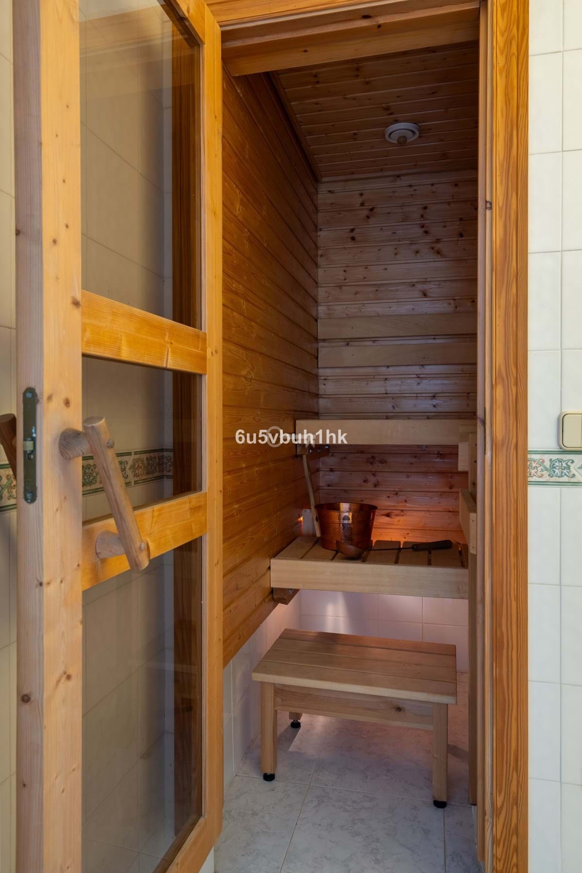 On the lower floor, youll find two more bedrooms, a bathroom, a laundry room, and even a private sauna. From here, you can access the back patio, which can also be used as private parking.