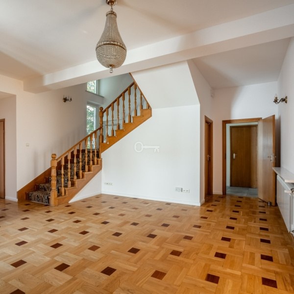 Prestigious part of Wilanów, surrounded by greenery and residences. An excellent choice for a family, diplomats, or as an elegant representative residence. In close proximity to renowned international schools and kindergartens. Quick access to the city center.