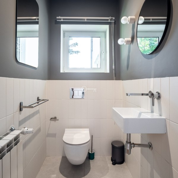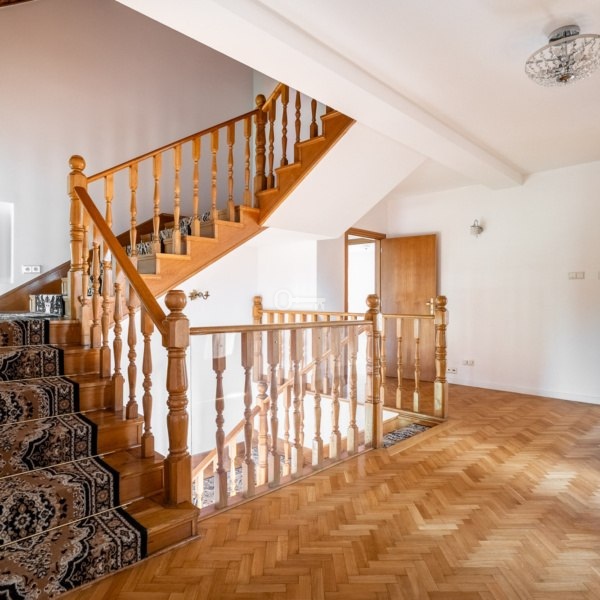 8 bedrooms | 4 bathrooms + 2 toilets | 192 m² reception area | Air conditioning | Sauna & gym | Garage for 2 cars + 3 parking spaces on the property | Konsalnet security system | Recreational garden | Comprehensive renovation in 2020