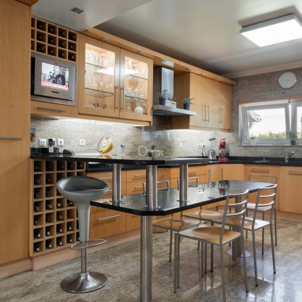 – Equipped Kitchen: 45m², with access to the garage, garden, and pool