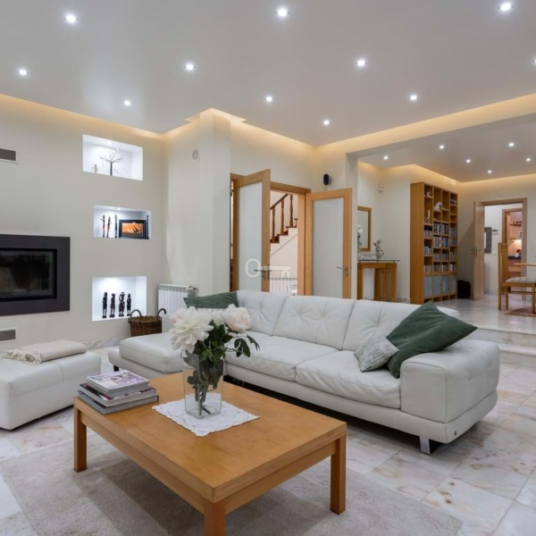 – Living Room: Spacious, with multiple seating areas, totaling 100m²