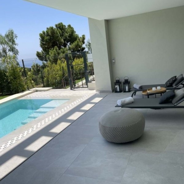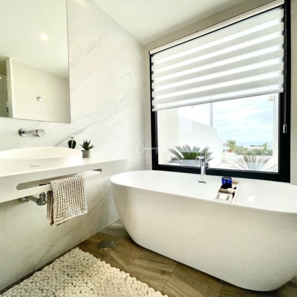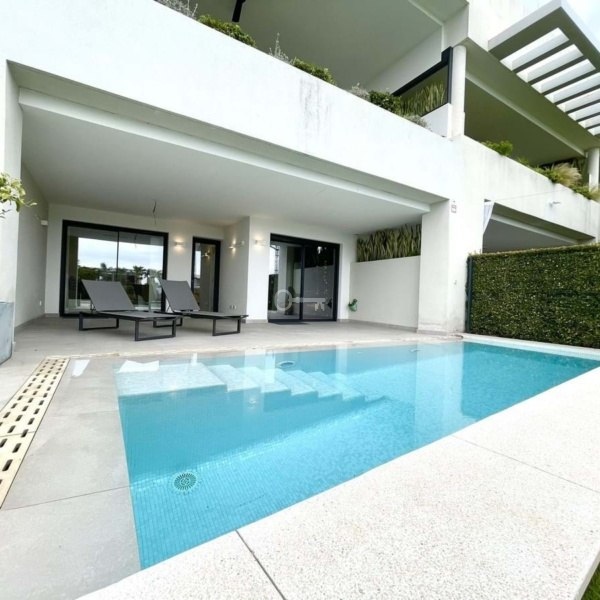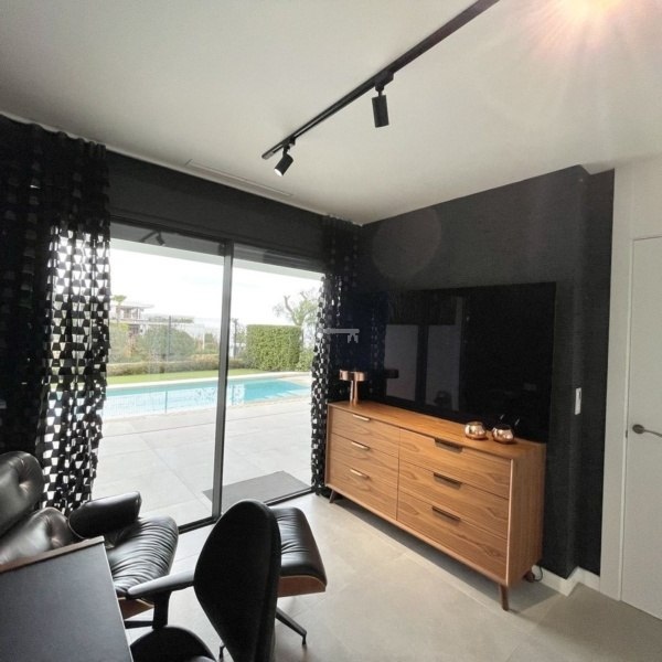 The Cape is an innovative residential project in Cabopino. This seaside wonder is located in the municipality of Marbella (Malaga), one of the most beautiful spots on Costa del Sol. The house is situated in a frontline golf, has 3 bedrooms all with en-suites and powder room, spacious terrace offers wonderful views of the Mediterranean Sea. There is a private swimming pool with sun terrace as well as private garden to enjoy the brightness of the region. The living room is designed to ensure wellbeing and offers ease and elegance with the hight of the ceiling of 3.60 metres.The architectural feature offers a very spacious and luminous space with stunning sea views to guarantee you a place of repose and leisure where to enjoy one of the most privileged areas of the world. The kitchen has been perfectly equipped with appliances NEFF, a brand that specializes in state of the art build-in kitchen appliances, Porcelanosa flooring, bathrooms and kitchen countertop with one piece integrated sink and top of the line faucets.Many upgrades have been done, extension of the master bedroom, laundry room with integrated sink and top of the line washer/dryer, exclusive lighting design, luxury automated window covering, wood paneling in the living room and bedroom, privacy glass curtain installed on the terrace separation, kitchen cabinets upgraded, tiled front porch, outdoor faucets installed, electric car charger installed next to the parking spot, energy efficient climate control by Aerotermia Daikin, in-floor heating through out the house.Must see to appreciate everything that this house has to offer.