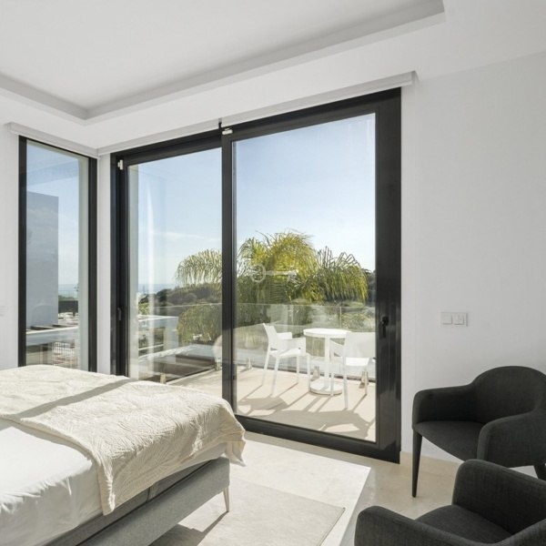 Built in 2020, the villa embodies a modern concept of elegance and functionality, designed to maximise the seamless indooroutdoor lifestyle that the Mediterranean climate makes possible. Perfectly positioned between Marbella and Fuengirola, on the boundary of Mijas Costa and Marbella, the property enjoys a highly desirable location for both holidays and permanent living. From here, you can take in panoramic views of the golf course, sea, and surrounding countryside, while being only a 15-minute walk from some of the finest beaches in the area.