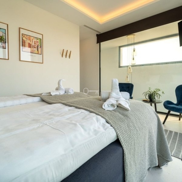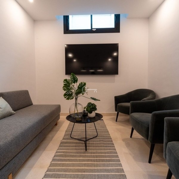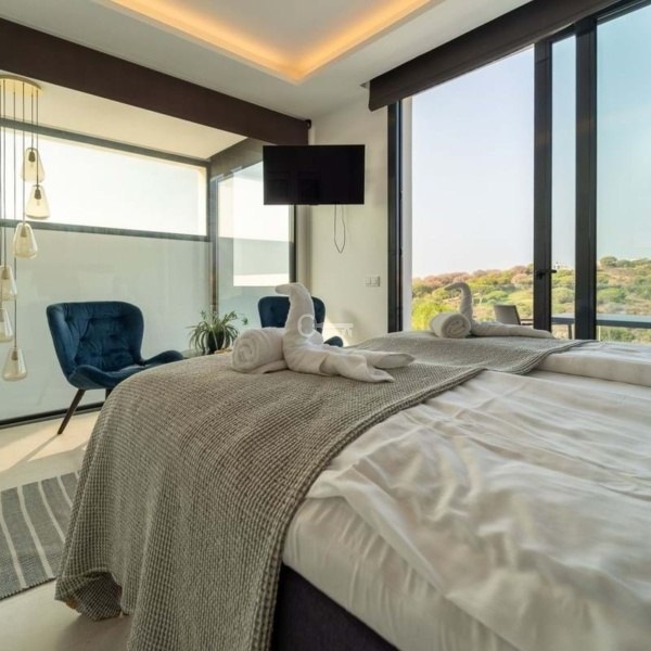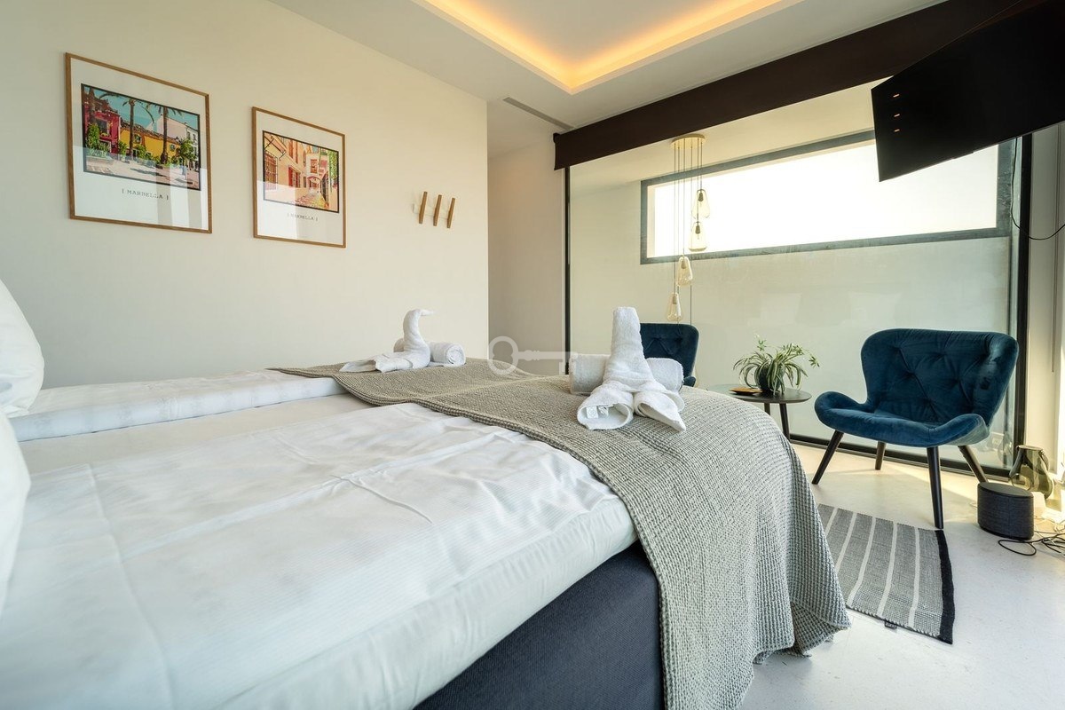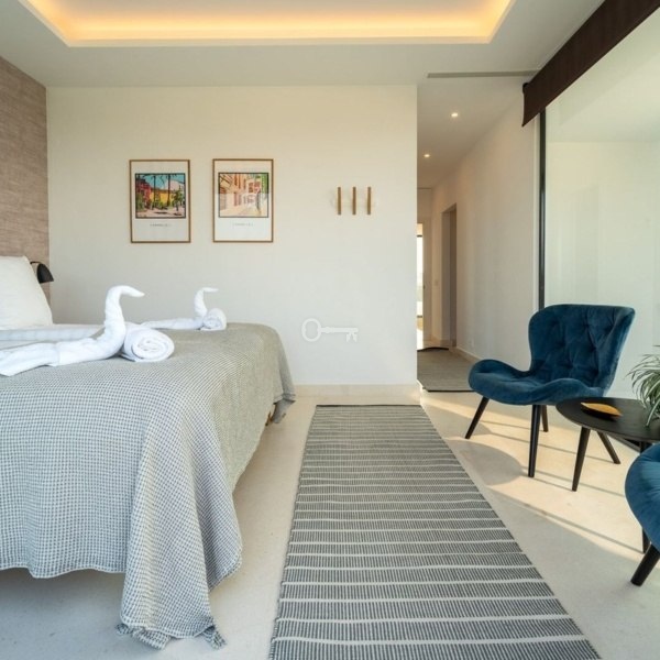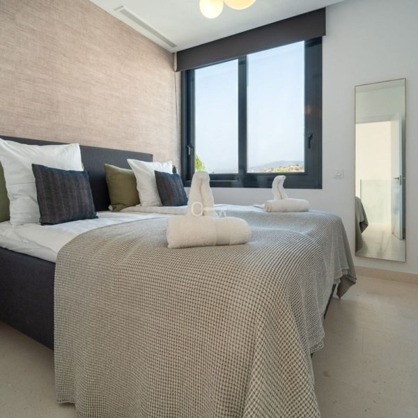 This luxury semi-detached villa offers five double bedrooms and is finished to a high standard with stunning views to the sea, golf course and the Marbella mountains.