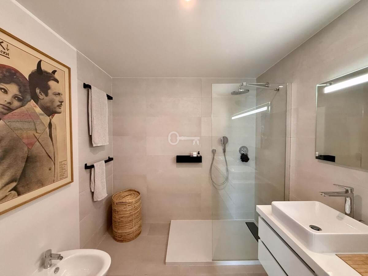 The middle floor accommodates the bedroom level, featuring four spacious bedrooms and two full bathrooms. The master has its own en-suite bathroom and refined finishes. Designed for comfort and privacy, this level offers a calm and restful atmosphere, with several bedrooms enjoying open views over the surrounding landscape.