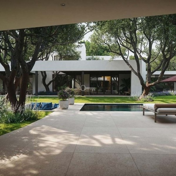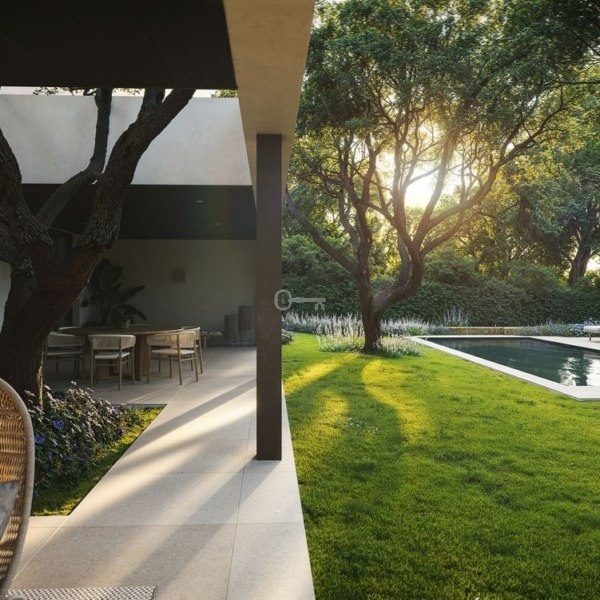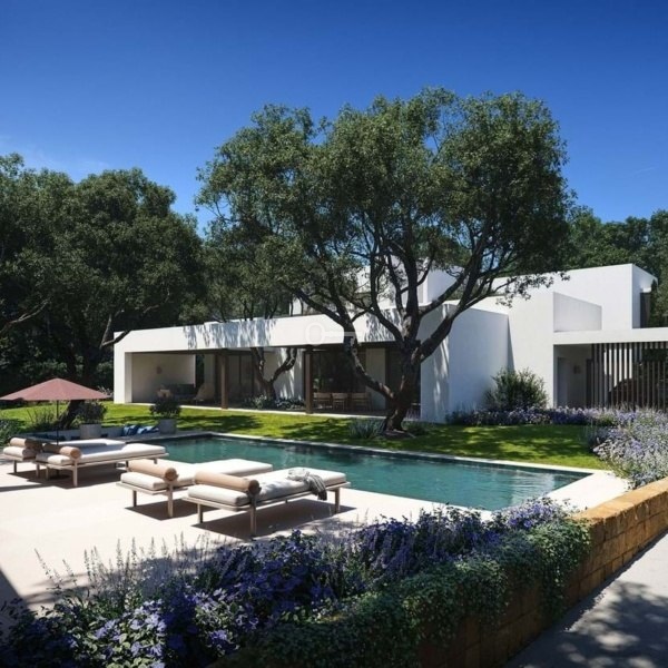 Luxurious modern villa among cork trees, featuring 4 ensuite bedrooms, an open-plan kitchen, large living area, and extensive outdoor amenities.