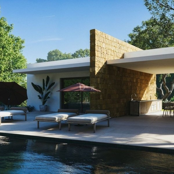 This off-plan project includes a building license already in place. The villa features 4 spacious ensuite bedrooms, an open-plan kitchen and living area, private pool, large garden, barbecue pavilion, guest area or gym, and multiple patios for natural light. The grand foyer leads to an open-plan living room with garden and pool views. The modern kitchen comes with high-end appliances and island seating. The master suite includes a walk-in closet, and spa-like bathroom. Three additional ensuite bedrooms provide ample space. There is a flexible space for a guest suite or gym. Outdoor features include a pool, landscaped garden, barbecue pavilion, and several patios. The villa boasts an eco-friendly design with sustainable materials and energy-efficient systems, plus advanced home automation for lighting, security, and climate control. A perfect blend of luxury, comfort, and nature.