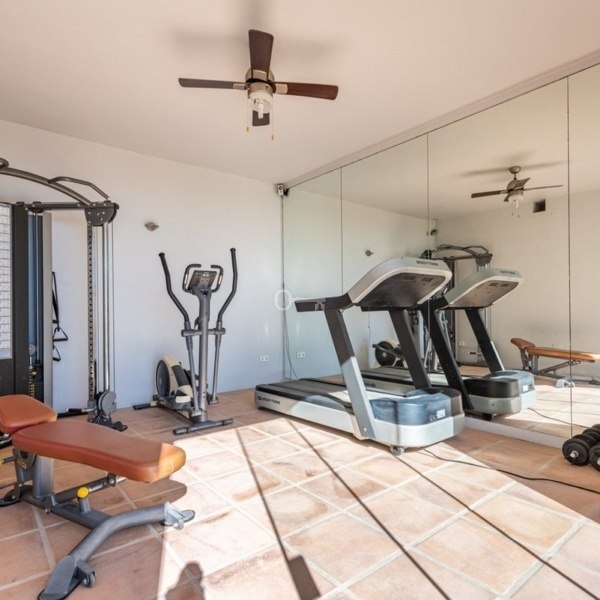 Located on one of the highest plots and surrounded by a natural environment with fruit trees, this property offers a separate staff area, as well as an infinity pool of 12 x 6 meters, accompanied by a large pool house, dry/wet sauna and infrared heating. In addition, the property has a garage with capacity for four vehicles.