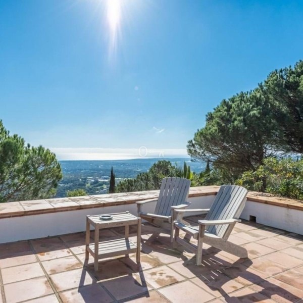 Mediterranean influences blend harmoniously with sleek modern design, complemented by iconic artwork and furnishings. The main residence offers generous living spaces, a separate dining room, three spacious bedrooms with en-suite bathrooms, a dressing room, and an 80 m² study highlighted by an imposing antique fireplace. In addition, the property features a gymnasium, a cinema room and extensive terraces that complete its amenity offerings.