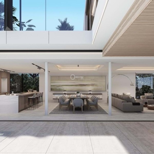 Nestled in the prestigious enclave of Sotogrande, this exceptional luxury villa offers a stunning resort-style living experience. Set across two elegant floors, the property features an open-plan layout that perfectly blends modern design with natural surroundings. The main level boasts a sleek contemporary kitchen, spacious dining area, and a bright living roomall flowing seamlessly together in a light-filled environment. Expansive glass doors open onto a private outdoor oasis, where a serene atmosphere awaits.