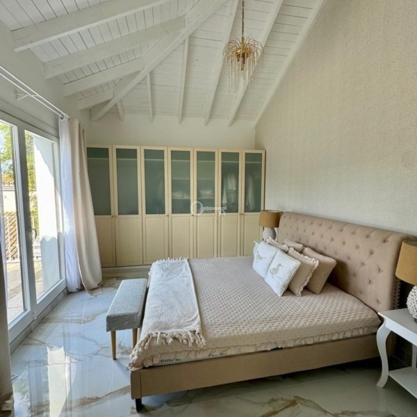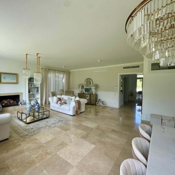 Set on a generous 1,100 m² plot and offering 400 m² of built space across two floors, the villa features six spacious bedrooms and five stylish bathrooms, including a luxurious master suite. The expansive open-plan living and dining area connects seamlessly with a covered terrace, leading to a beautifully landscaped, flat garden and a private swimming poolperfect for outdoor entertaining or relaxed family living.