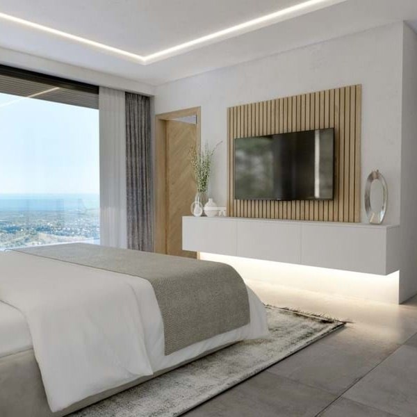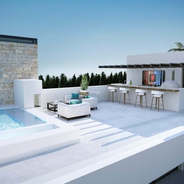 The upper floor features three luxurious master suites, each with private wraparound terraces framing uninterrupted views of the Mediterranean. Crowning the property is the showstopping rooftop a private sanctuary complete with a plunge pool, designer outdoor fireplace, al fresco kitchen, and BBQ area. Integrated solar and photovoltaic panels ensure energy efficiency and independence.