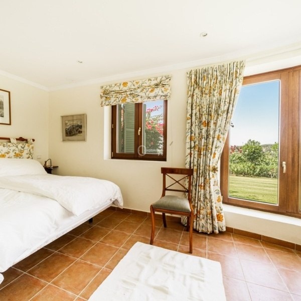 Situated in a quiet location, this southeast-.facing villa comprises, on the ground level: entrance porch, hall, living room, formal dining room, large kitchen with a sitting area and fireplace, pantry, laundry room, guest toilet, master bedroom with dressing rooms and bathroom, and an office with an adjoining bathroom. There is also a garage for two cars, above which is a guest apartment including a bedroom, bathroom, and kitchenette. Access to the mature garden with swimming pool.