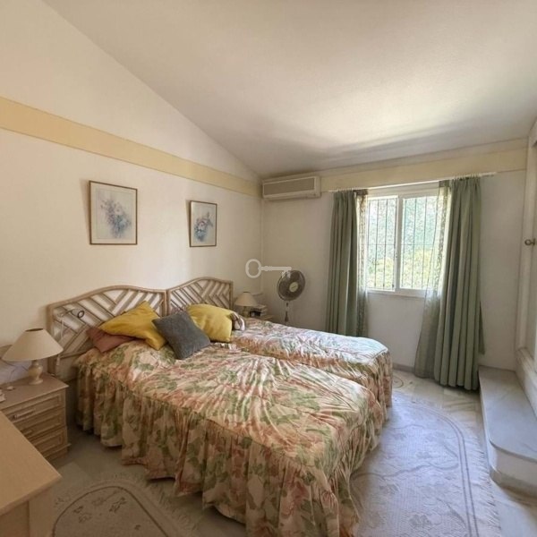 Upstairs, there are two bedrooms, both with built-in wardrobes and air conditioning, as well as a bathroom with a shower. A well-planned and inviting home in a quiet and well-loved community close to everything Calahonda has to offer.
