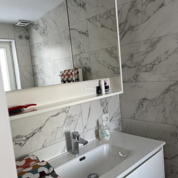 On the main floor, you will find a bright and cozy living room with direct access to the private garden, ideal for enjoying the sun all year round. Next to the living room is a fully equipped kitchen and a guest toilet. The entire space has been designed to offer maximum comfort for everyday living.