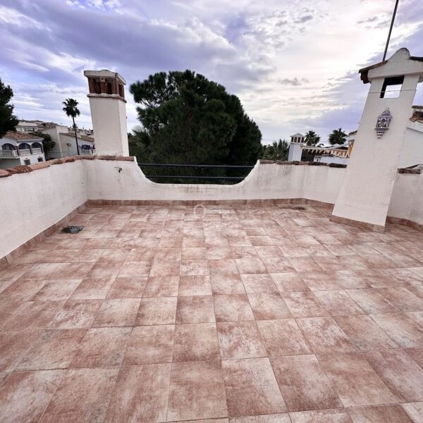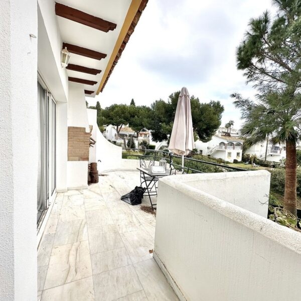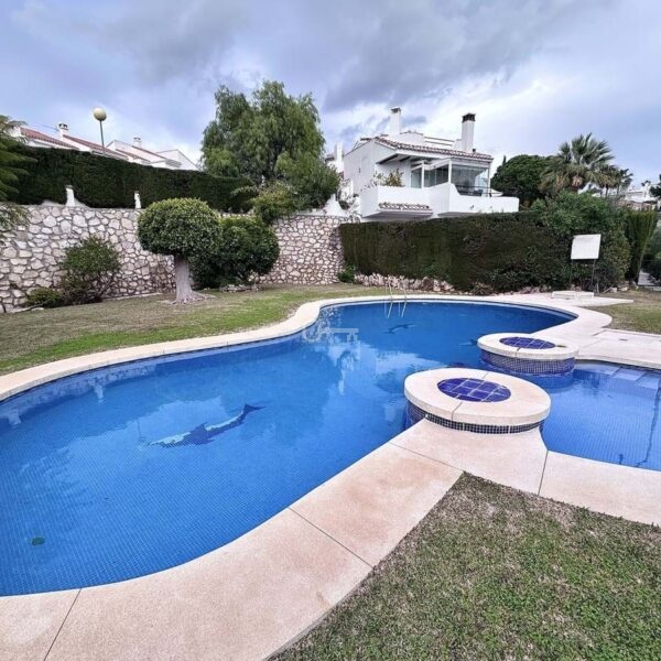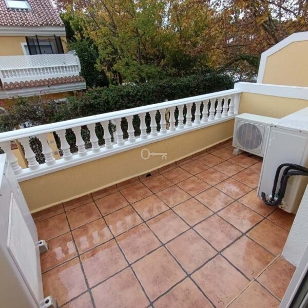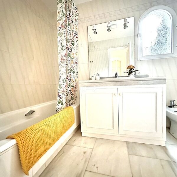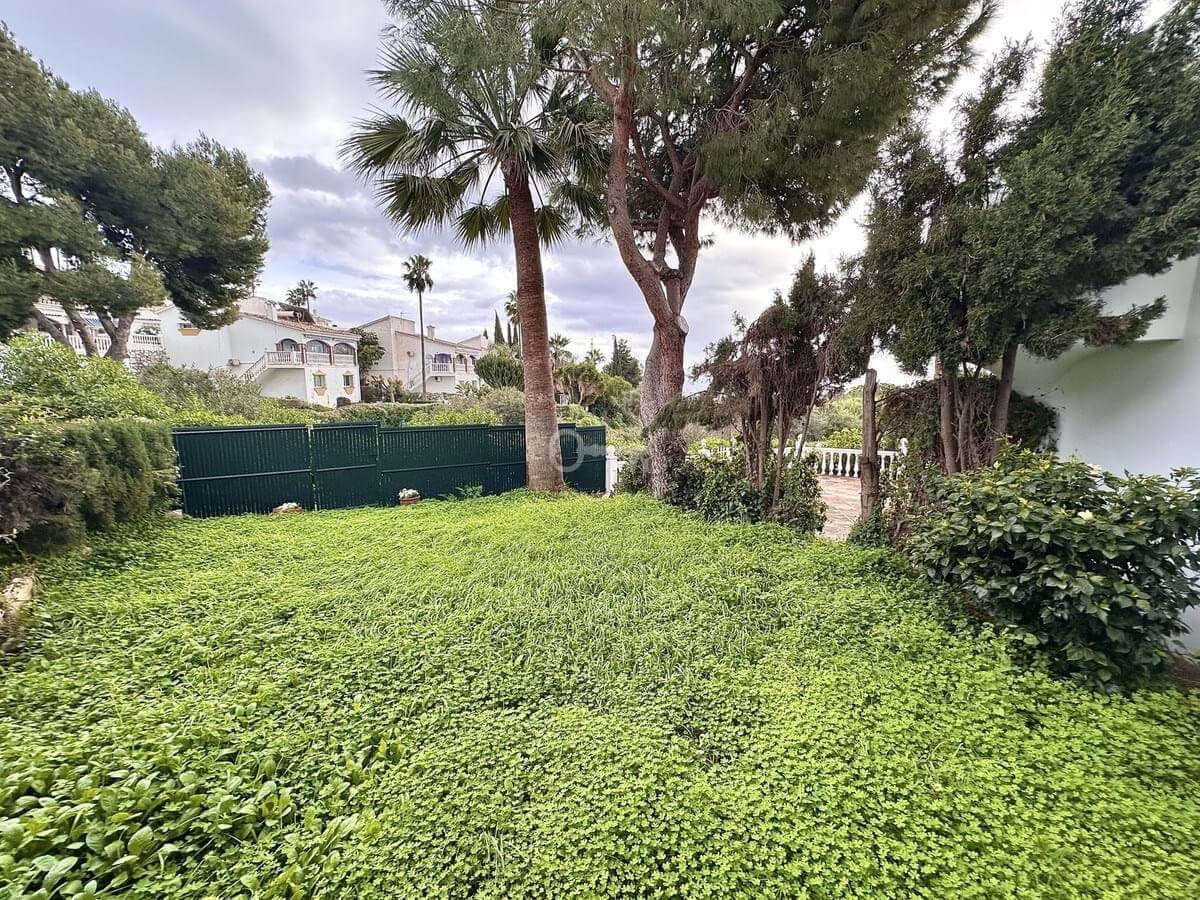 The ground floor houses the sleeping area, consisting of three bedrooms and two bathrooms, one of them en-suite in the master bedroom. Both the master bedroom and one of the secondary bedrooms have direct access to a private garden of approximately 50 m², an intimate and pleasant space that connects directly to the community pool, ideal for enjoying the climate and outdoor living.