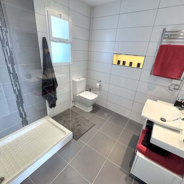 UPPER LEVEL: You have a nice size landing with large picture window and doors to 3 double bedrooms and a second luxury shower-room. The Master bedroom has its own walk in wardrobe and en-suite luxury shower-room and all three double bedrooms upstairs have fitted wardrobes and patio doors leading out to the main upstairs south-facing terrace, again all upstairs bedrooms and terrace offer panoramic green hillside and sea views.