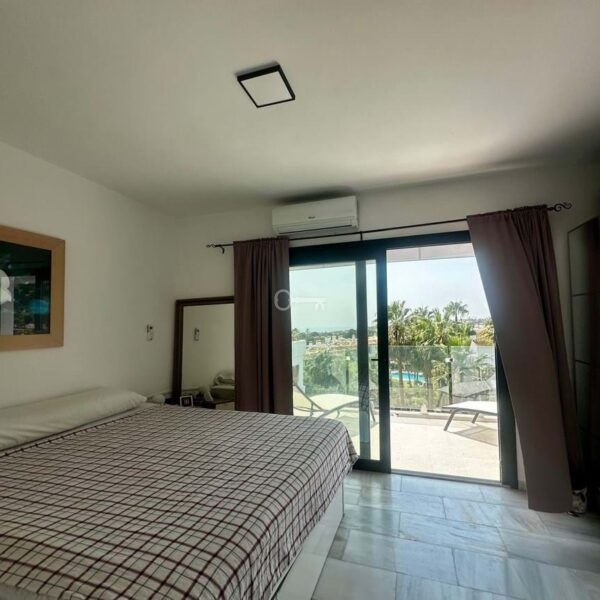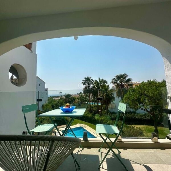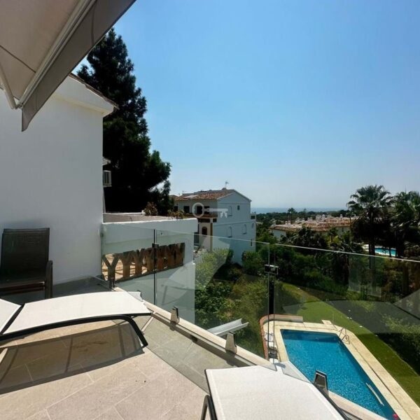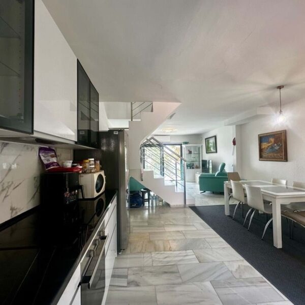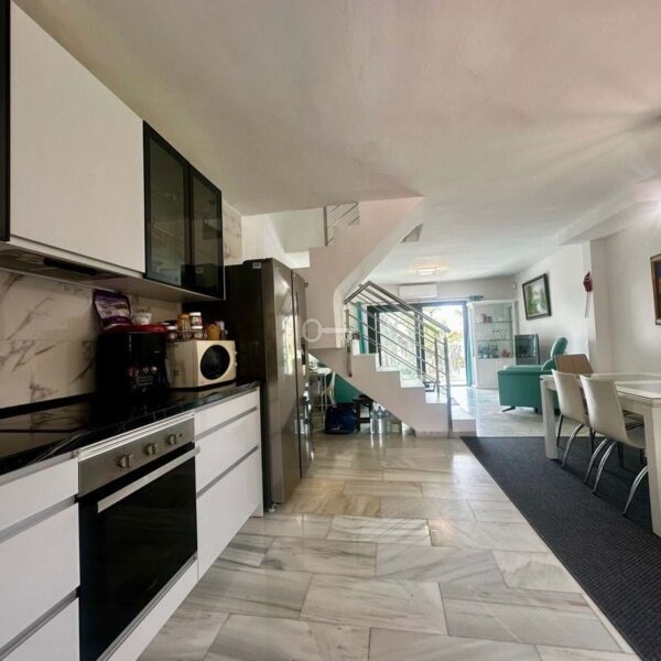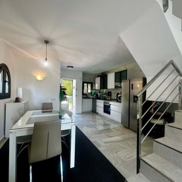 Charming semi-detached house in Calahonda, located on the first line of a golf course within a quiet residential area with a communal pool and beautifully maintained gardens.