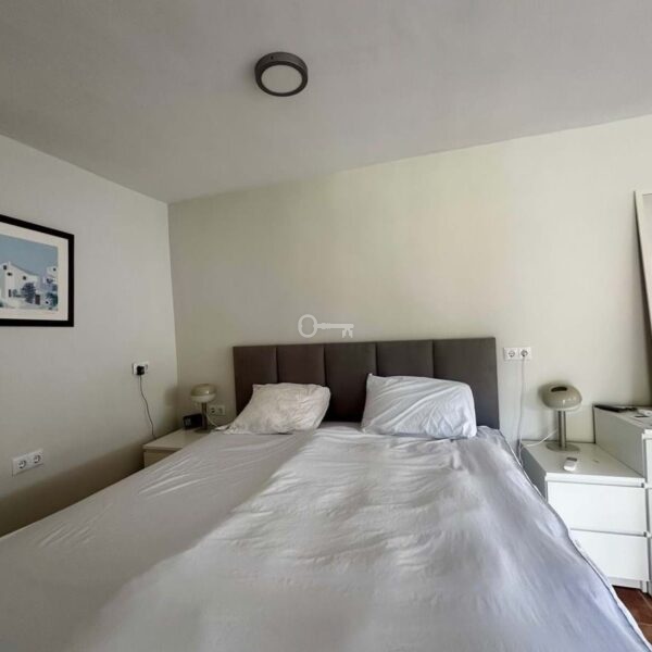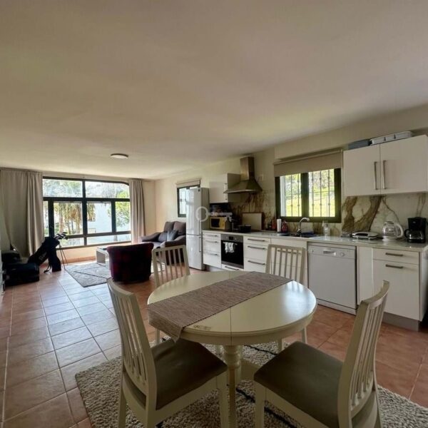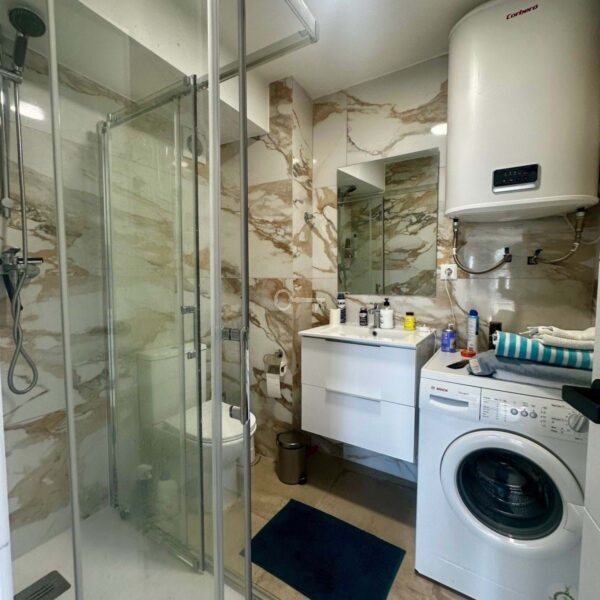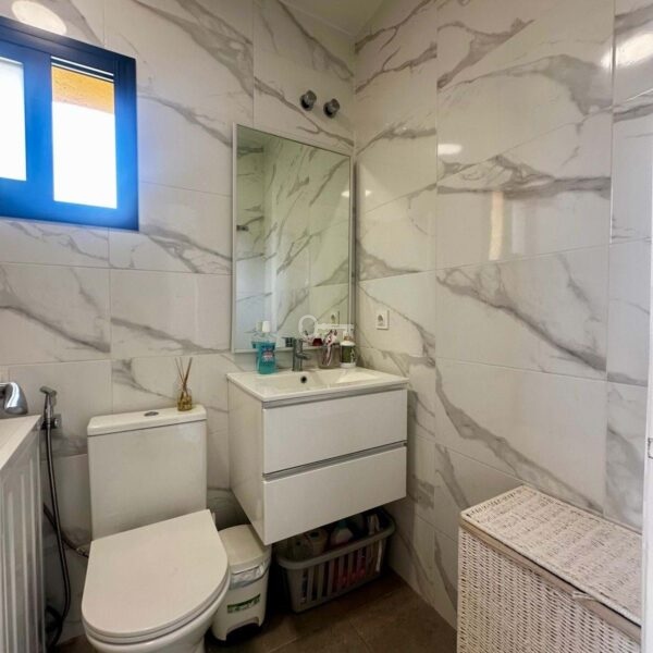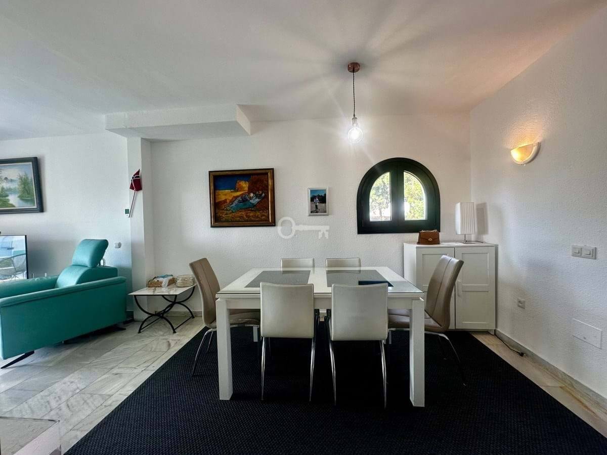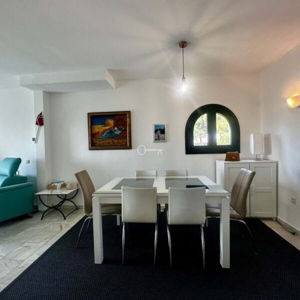 The bright and cozy living room is connected to an open-plan kitchen, creating a comfortable and functional space for everyday living. From here, there is direct access to a beautiful terrace with sea views, perfect for outdoor dining or evening relaxation.