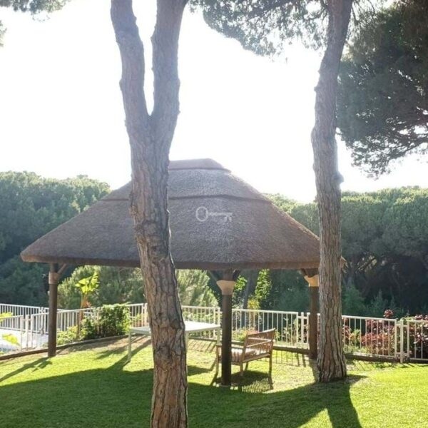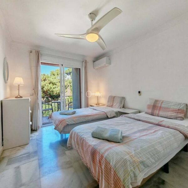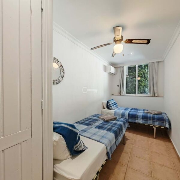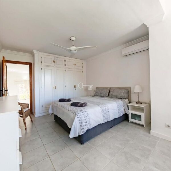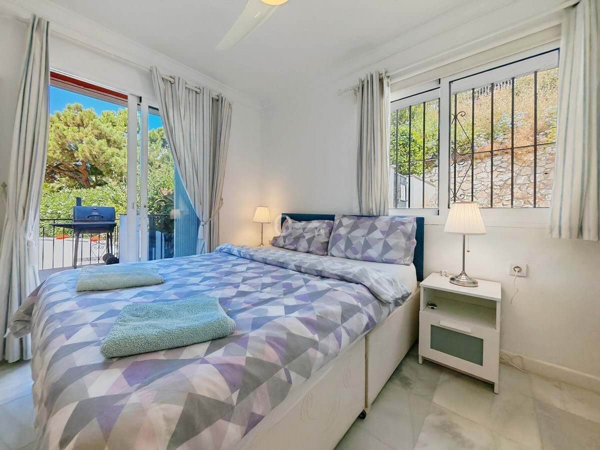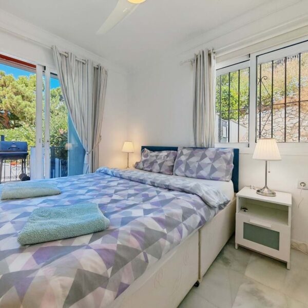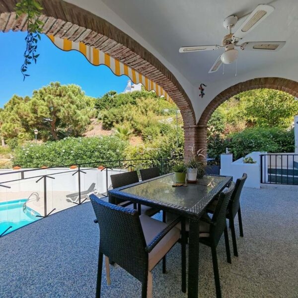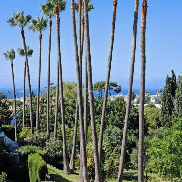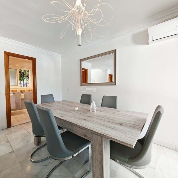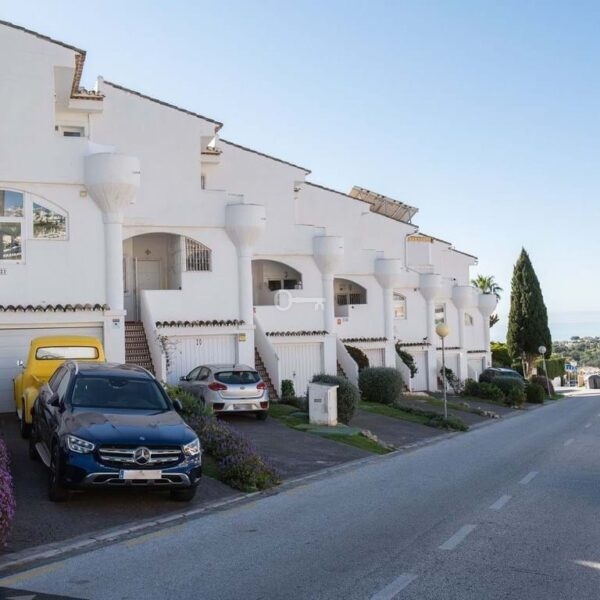 Town House for sale in , Mijas Costa with 5 bedrooms, 4 bathrooms and with orientation south/west, with private swimming pool, private garage (2 parking spaces) and private garden. Regarding property dimensions, it has 210 m² built and 140 m² terrace. Has the following facilities transport near, air conditioning, fully furnished, fully fitted kitchen, utility room, fireplace, basement, guest room, storage room, solarium, double glazing, barbecue, guest toilet, private terrace, kitchen equipped, living room, study room, separate apartment, sea view, bars, laundry room, internet – wi-fi, covered terrace, fitted wardrobes, garden view, pool view, panoramic view, close to children playground, close to sea / beach, close to golf, uncovered terrace, glass doors, balcony, excellent condition, ceiling cooling system, close to shops, close to town, close to schools, guest apartment, office room and pets allowed.
