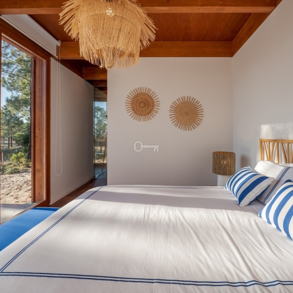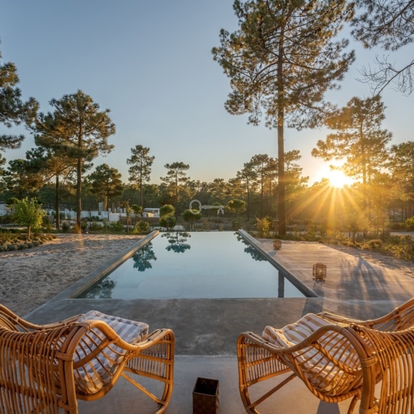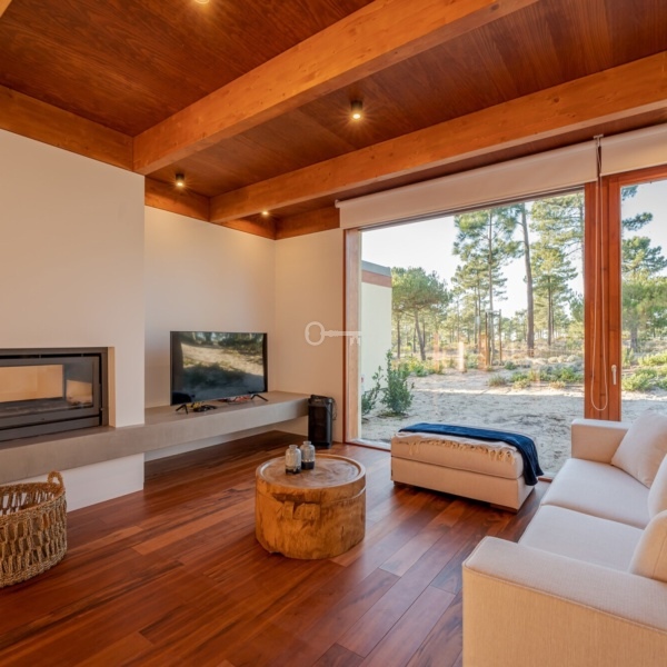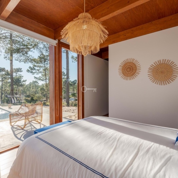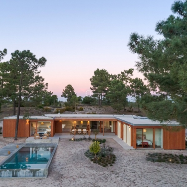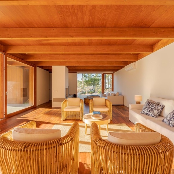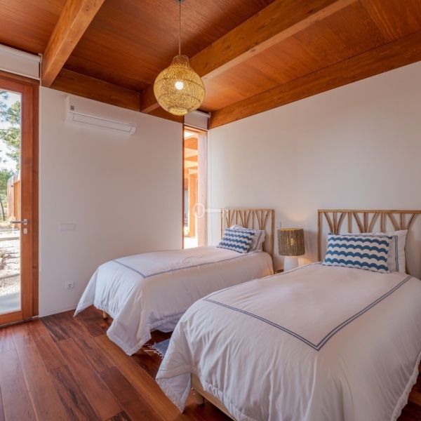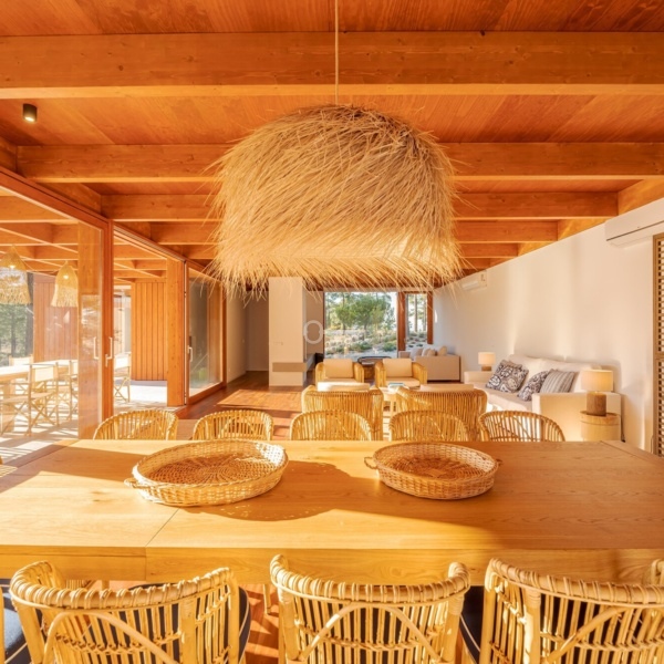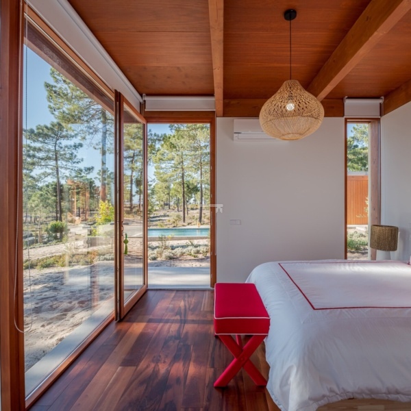 4-bedroom villa, approximately 200 sqm (gross construction area), set in a 2516 sqm plot of land, with swimming pool and garden, in a gated community, in Carvalhal, Comporta. The main block has a 75 sqm living room, divided into three atmospheres for dinning, sitting and watching television, open plan kitchen, laundry, guest bathroom, and a master suite. The second block has two suites and a bedroom with independent accesses. Possibility of building a new block. Excellent sun exposure and borehole.Comporta Retreat is a gated community extending over more than 12 hectares, immersed in a pine forest with 28 plots of areas between 2000 sqm and 5500 sqm. Single-storey houses composed of various volumes united by wooden walkways. The architectural projects are designed by 3 renowned architects, following a series of previously established guidelines that preserve the local flora and, at the same time, highlight the beauty of the surrounding landscape. Located at a 2-minute driving distance from Carvalhal beach, 5 minutes from Pego beach, 10 minutes from the village of Comporta, and 20 minutes from the Troia golf courses and the Marina, as well as the famous Vila de Melides. One hour from Lisbon.