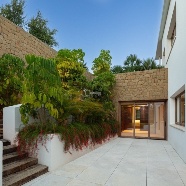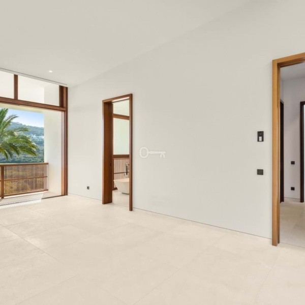 This exceptional residence, exclusive to the Finca Cortesin resort, exudes a captivating blend of luxury and elegance. Designed by the renowned Jose Maria Sierra architects, this architectural masterpiece stands unrivalled on the Costa del Sol, boasting a remarkable plot and breathtaking views. The property showcases an abundance of floor-to-ceiling windows that grace both levels, allowing natural light to flood the interiors. Its striking white facade, embellished with wooden accents, sets the tone for a seamless transition between the exterior and interior spaces. Of particular note is the impressive ceiling height, soaring to an astonishing 9 metres in the ground-level living area. A unique feature is the smaller living area on the top floor, providing a vantage point overlooking the ground-floor living spacea private retreat, akin to a concealed terrace within the property. The upper level is dedicated to the master bedroom and two guest rooms, each offering their own allure with stunning views of the golf course and Mediterranean Sea. The lower level encompasses the remaining bedrooms, living area and kitchena harmonious blend of functionality and style. The entire ground floor effortlessly opens up to the garden, welcoming fresh air and natural light into the property. The crown jewel of this residence is the spectacular garden, expansive in size and meticulously manicured. A haven for outdoor enthusiasts, the garden boasts an enticing pool with dark azure tiles that beckons for a refreshing swim, while the integrated gazebo next to the pool provides an idyllic setting for relaxation. Majestic palm trees line the garden, complementing the sweeping vistas of the golf course and Mediterranean coastline. Delightful landscaping, featuring stunning flower beds and meticulously trimmed bushes, adds a touch of natural beauty. With its privileged frontline golf location, awe-inspiring architecture and unparalleled ambiance, this truly unique property stands as a testament to the allure of the Finca Cortesin Resort.