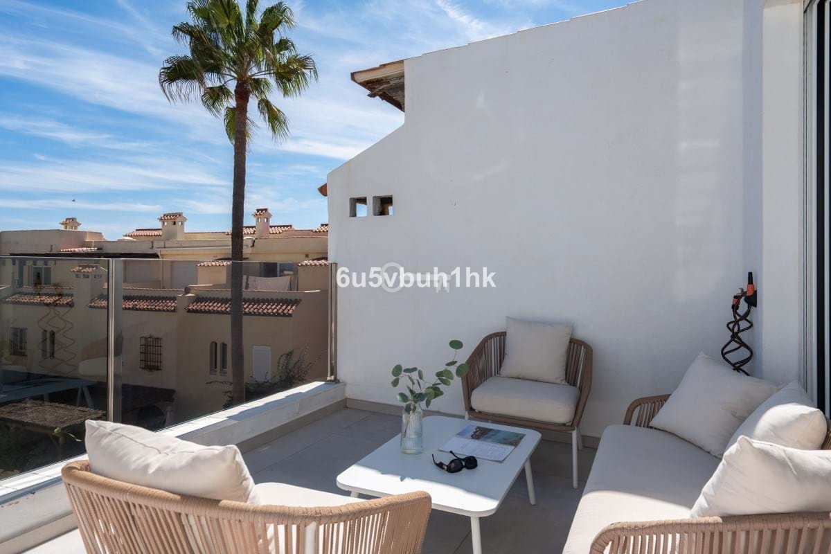 A well distributed bright south facing townhouse built over three floors, in a small beachfront community of houses, with direct access out to the beach through the community gate. The property has been fully reformed to a high standard with new carpentry, solar panels, security blinds, alarm and many personal touches and modern appliances. It has floor to ceiling windows, and good quality finishes throughout.