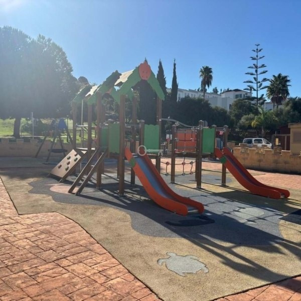 The pool area is beautiful with a well maintained lawn, chiringuito area, and Mountain views. Tropical plants surround the heated pool to create an oasis of serenity.