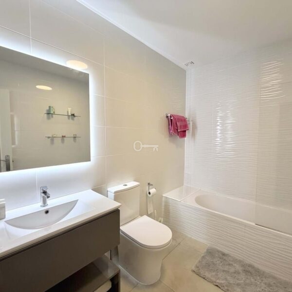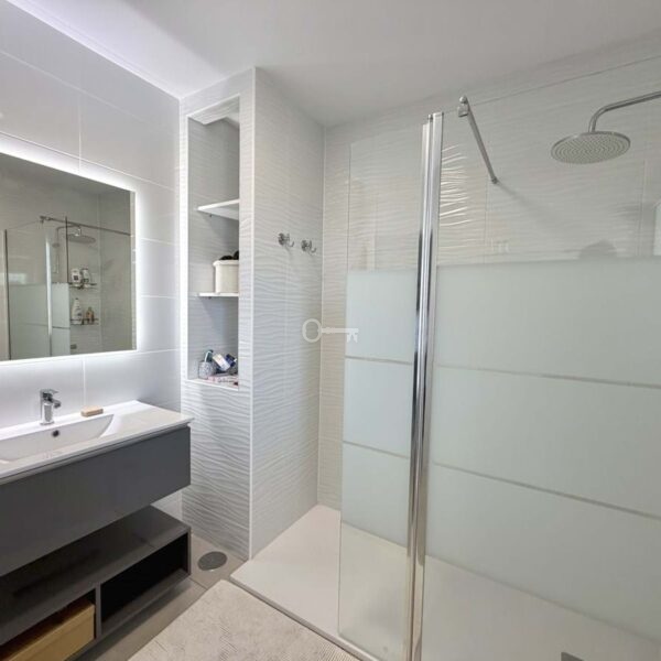 The living spaces are thoughtfully designed, with a fully furnished and air-conditioned living room that opens onto a private terrace. The kitchen is fully fitted and equipped, catering to all culinary needs, while fitted wardrobes and a dedicated storage room provide ample space for organisation. Modern conveniences such as double glazing, fibre optic internet, and Wi-Fi ensure a comfortable and connected lifestyle.