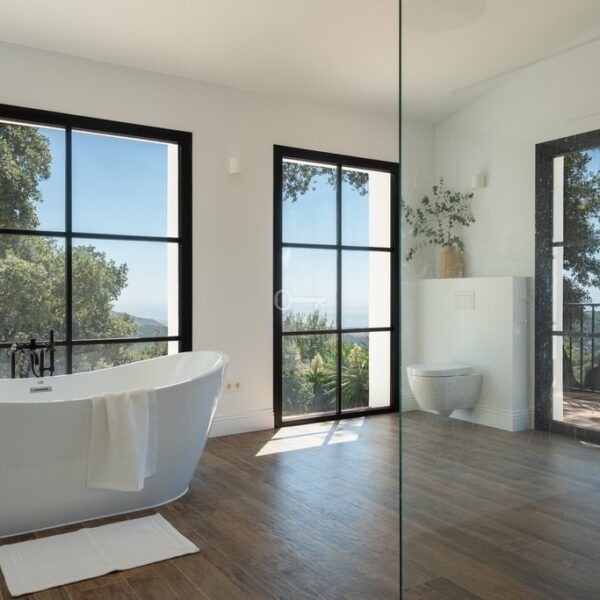 Discover a private paradise where Scandinavian design meets the raw beauty of the Andalusian landscape. Fully renovated, this five-bedroom, five-bathroom villa offers a rare sense of calm, complete privacy and open views across the Mediterranean, Estepona and the Sierra Bermeja mountains. The setting is exceptionally quiet, with nothing but nature in the background, yet the property remains easily connected, just 25 minutes from Estepona and 7 minutes from the main road.