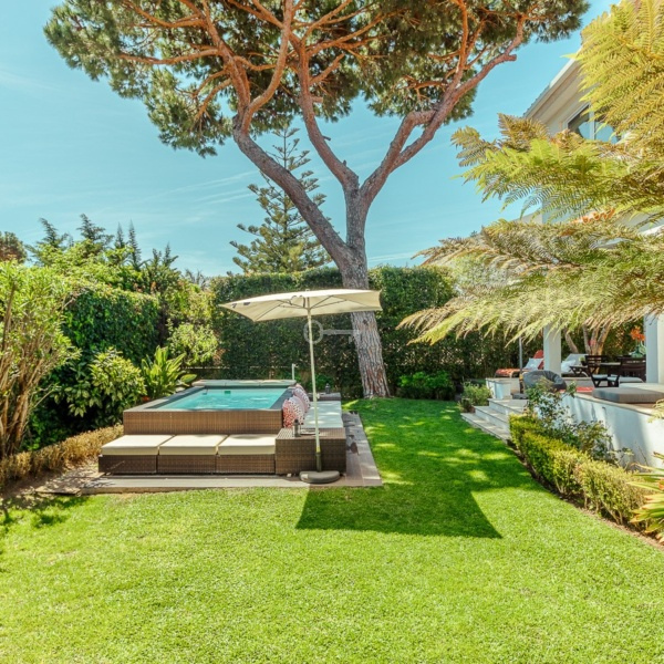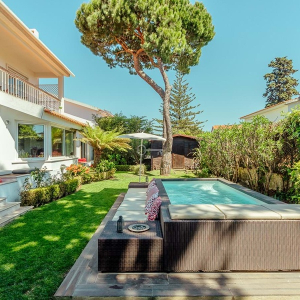 4+1 bedroom villa with 285 m2 of gross construction area, garden, swimming pool and parking, on a plot of land with 624 m2, in Bairro do Rosário, in Cascais. The villa is distributed over two floors. On the entrance floor it has a reading room, large living room, dining room, all these rooms overlooking the garden and pool, kitchen completely remodeled in 2013, office, laundry and social bathroom. On the second floor a master suite with walk-in closet, three bedrooms, two of which with balcony, and a shared bathroom. Two covered parking spaces outside.The villa is located in an area very well served by transports, commerce and services. 5 minutes walking distance from King’s College School and Externato Nossa Senhora do Rosário. 5 minutes driving distance from Quinta da Marinha, Guincho beach, CUF Cascais, Casa da Guia shopping center, Guia lighthouse, Boca do Inferno, Cascais train station and Cascais downtown. It is also 10 minutes from the Alcoitão Health School, PaRK International School – Cascais, St. George’s School and Santo António International School. 15 minutes from the center of Sintra, 30 minutes from the center of Lisbon and Humberto Delgado Airport. Easy access to the marginal road and A5 highway.