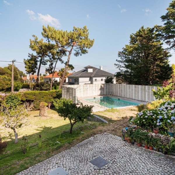 4-bedroom villa, 532 sqm (gross construction area), set in a plot of land with 1m944 sqm, garden and swimming pool, large terraces, located in a privileged area in Estoril, Cascais. The illustrative photos are of the already approved remodelling project, with the corresponding budget. This house is spread over three floors, with floor 0 comprising an entrance hall with a cloakroom and a guest bathroom, a large entrance room with about 50 sqm and double height ceiling, a living room with about 30 sqm, living room with heat recuperator and access to a large terrace overlooking the garden and the swimming pool, a dining room with fireplace, equipped kitchen with dining area and pantry. The kitchen has direct access to a large garden/vegetable garden. On the 1st floor: four bedrooms, one of them is the master suite with dressing room and a large bathroom. One full bathroom. One of the bedrooms has access to the upper floor where there is a large terrace/solarium. On the lower floor there are: a living room, two bedrooms, laundry, and a full bathroom. Garage for two cars with direct access to the house. Outdoor parking. 10-minute walking distance from Escola Salesiana do Estoril, German School (Deutsche Schule Lissabon)and SAIS (Santo António International School). Just 5 minutes from the Estoril Golf Club, from the CTE (Estoril Tennis Club). 5-minute driving distance from the access to the highway, 10 minutes from Cascais Marina, Quinta da Marinha Golf Course, Oitavos, CUF Cascais, Cascais Hospital and Clínica Joaquim Chaves Saúde do Cascais Shopping and 15 minutes from the centre of Sintra and 30 minutes from Lisbon Airport.