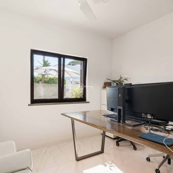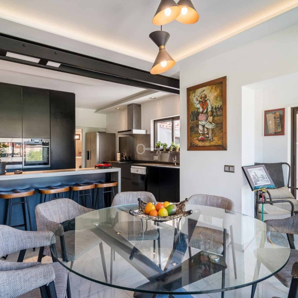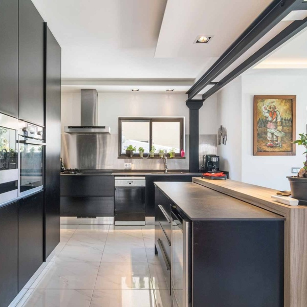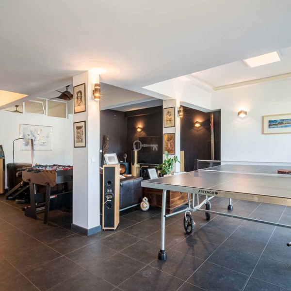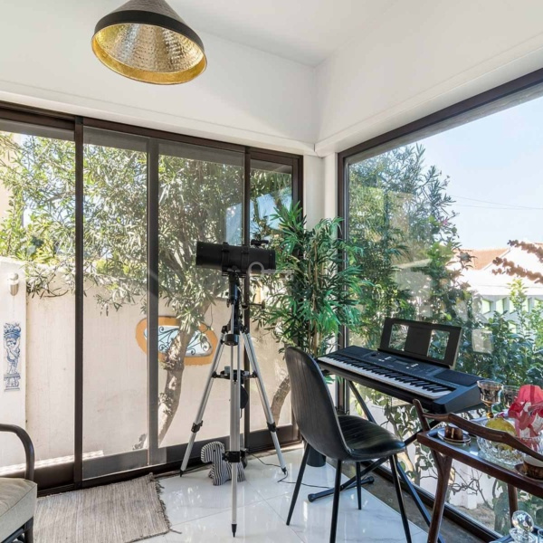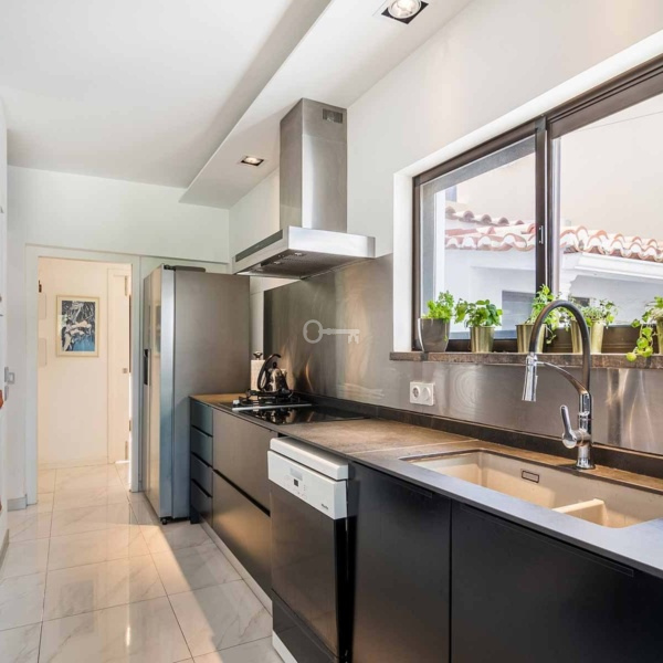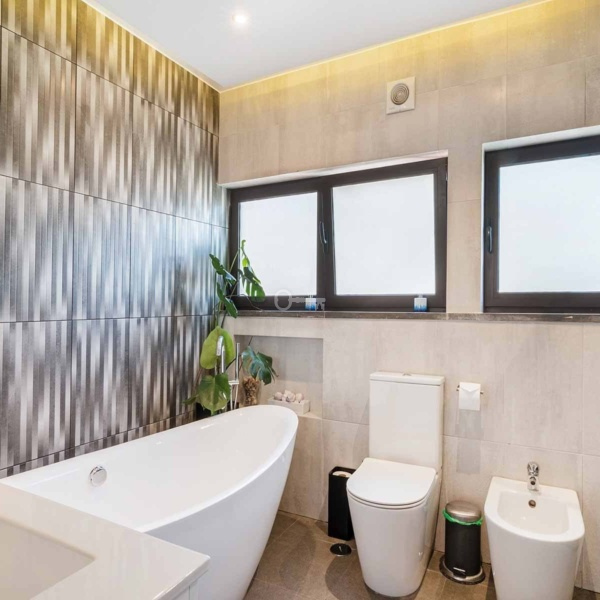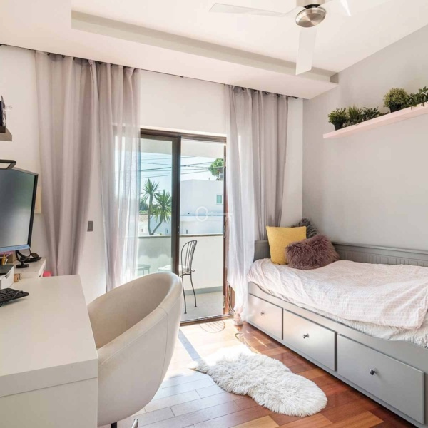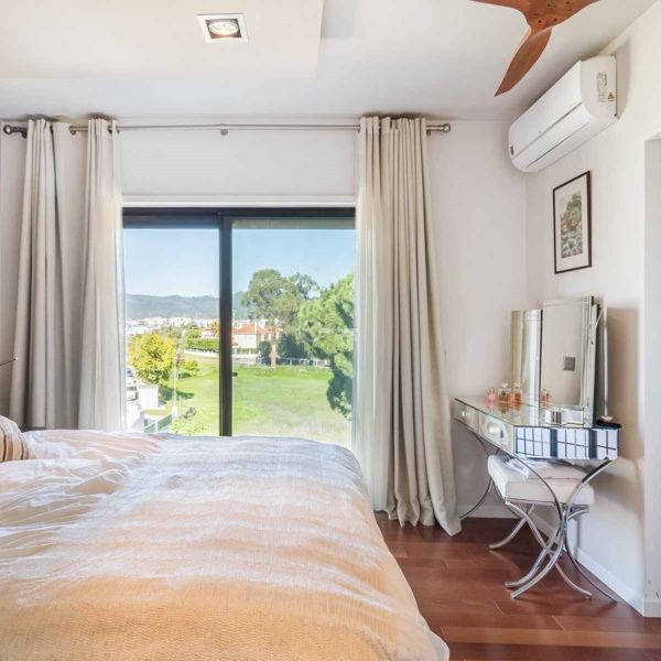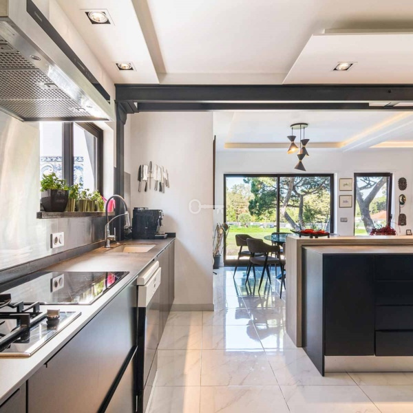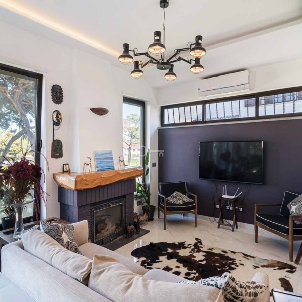 5-bedroom villa, 346 sqm (construction gross area) and 161 sqm of gross dependent area, set in a plot of 590 sqm, modern lines, fully rehabilitated in 2018, with lots of natural light, garden, and swimming pool in a residential area in Estoril, Cascais. The villa is spread over three floors. Entrance floor: a living room with a dining room and a fully equipped and very modern American kitchen, facing the garden and the swimming pool with an unobstructed view of the Serra de Sintra. On the same floor: a suite, an office and a laundry room. Upper floor: a master suite with closet, two bedrooms and a bathroom. Lower floor: a multi-purpose cinema room, a suite, a gym and a storage room, all facing the garden and the swimming pool. The swimming pool is heated to 30º degrees and has an electric cover. The water is treated with saline electrolysis. It has an annex, in the garden, which serves as a storage and support room. The villa has underfloor heating in ceramics and wood, air conditioning, ceiling fans in the living rooms and three fireplaces, one on each floor. It has a borehole for watering the garden and filling the swimming pool. Entrance with electric gate for uncovered parking for three cars.In a calm area of villas, with excellent location, 15-minute driving distance from international schools such as IPS- International Preparatory School and TASIS Portugal, St. Julian’s School, Quinta da Beloura and Quinta Patino, CascaiShopping, Cascais Hospital, and local shops. 5 minutes from the access to A5 and A16 motorways. 15-minute driving distance from the centre of Sintra and 30 minutes from Lisbon and Humberto Delgado Airport.