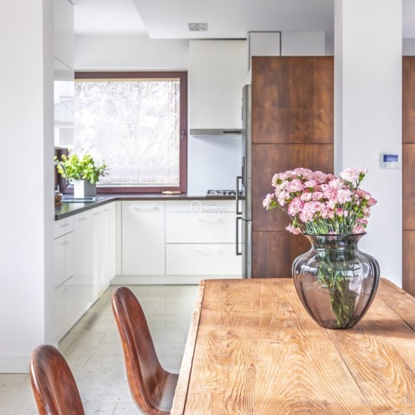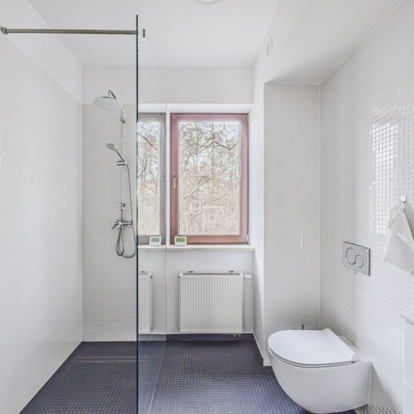Elegant white marble has been laid in the kitchen and living room, while the rest of the house is lined with renovated ash parquet. Built-in kitchen with full household appliances. Underfloor heating is installed in the living room, and a central vacuum cleaner is available throughout the house. A complete alarm system is also installed, for which you can additionally purchase a security service. There are functional built-in closets on the first floor and in the hallway.