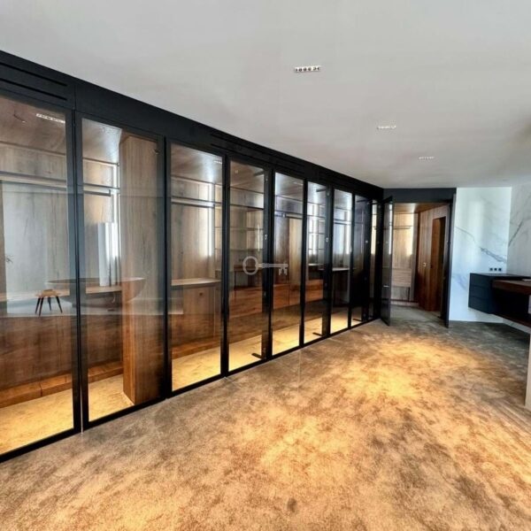 The property is distributed across several levels, designed to maximize natural light and functionality. The main floor features a bright and spacious living area with direct access to the outdoor terrace, seamlessly connected to a fully fitted modern kitchen. This level also includes a guest toilet and a beautifully designed master bedroom with en-suite bathroom.