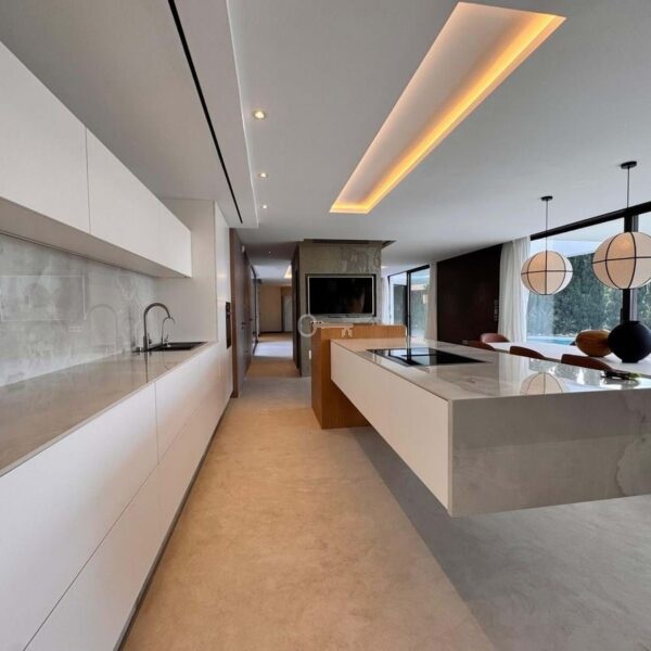 Outside, the villa enjoys a private swimming pool, landscaped garden, and generous terraces, ideal for enjoying the Mediterranean climate all year round.