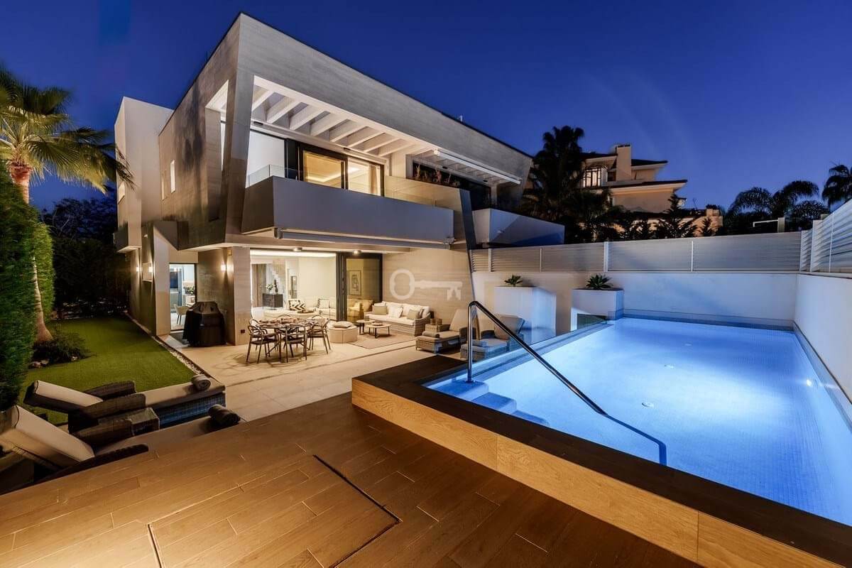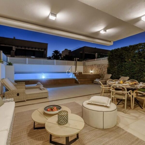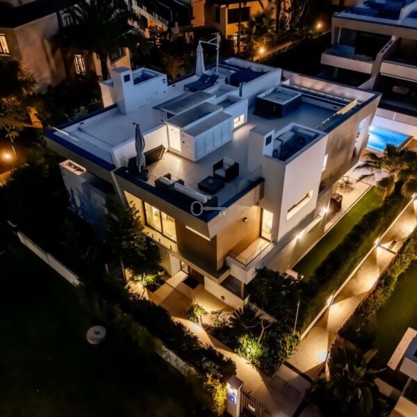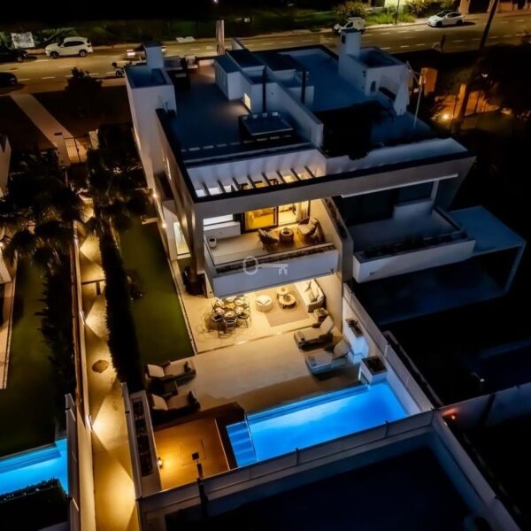 Welcome to Banus Bay, a contemporary semi-detached villa located beachside within an exclusive gated community, just minutes from Puerto Banús. Set amid lush green areas and only steps from a beautiful sandy beach, this elegant five-bedroom home offers the ideal balance of luxury, comfort, and coastal living.
