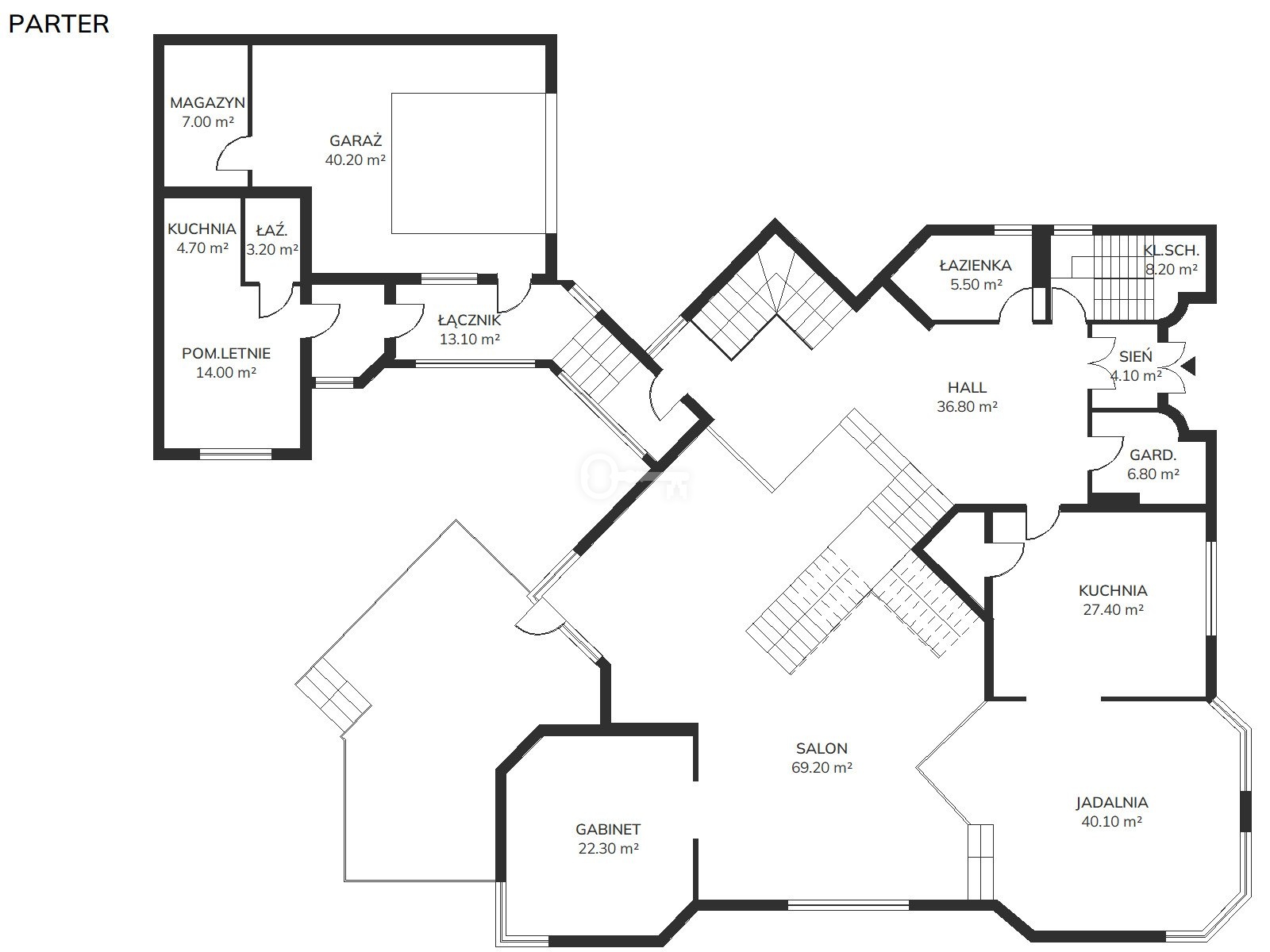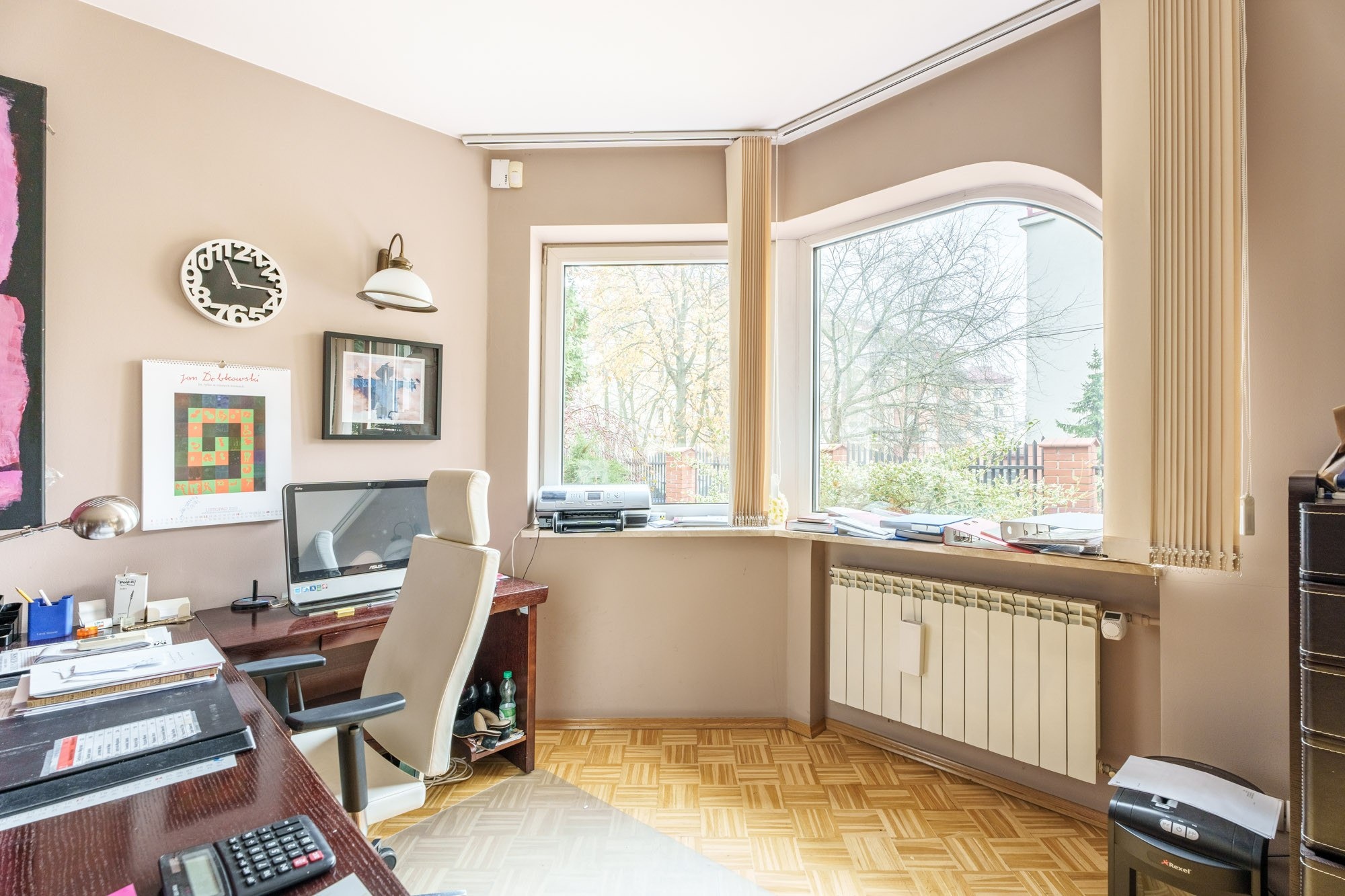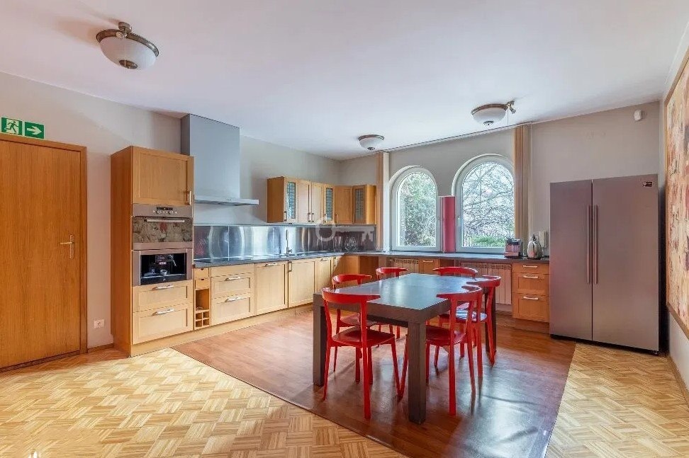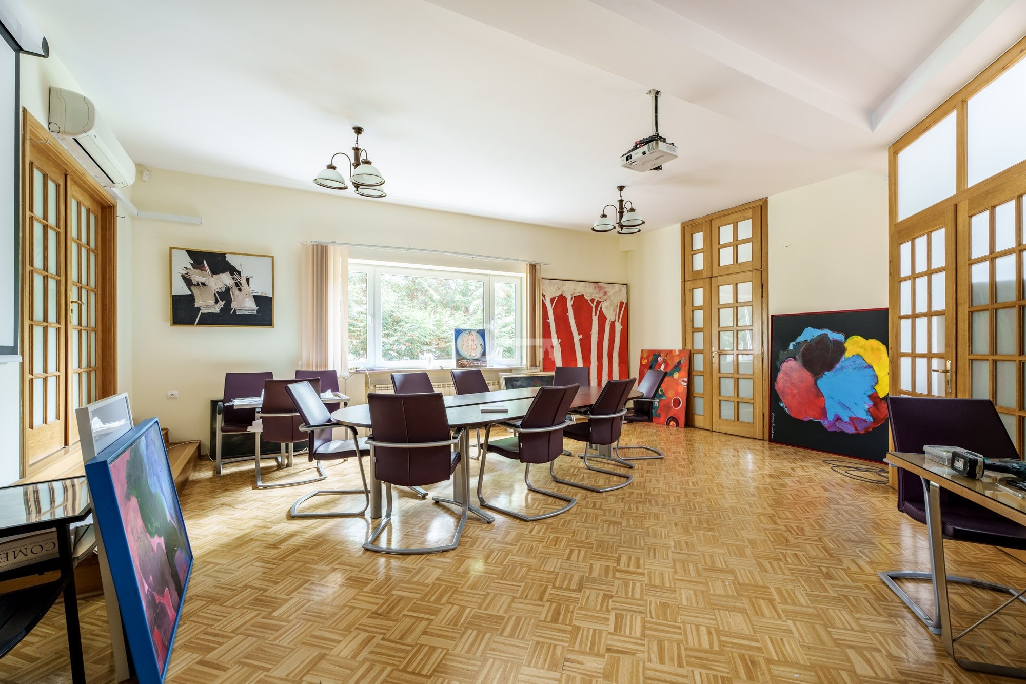 Approximately 410 m2 of usable space on the first floor and the first floor and an additional 200 m2 in the first floor (most of the rooms have windows), gives a lot of adaptation possibilities. Fully monitored building in good technical condition, all rooms air-conditioned. In addition, there is a detached garage for 2 cars and the possibility of parking several more cars in a gated area of the property.
