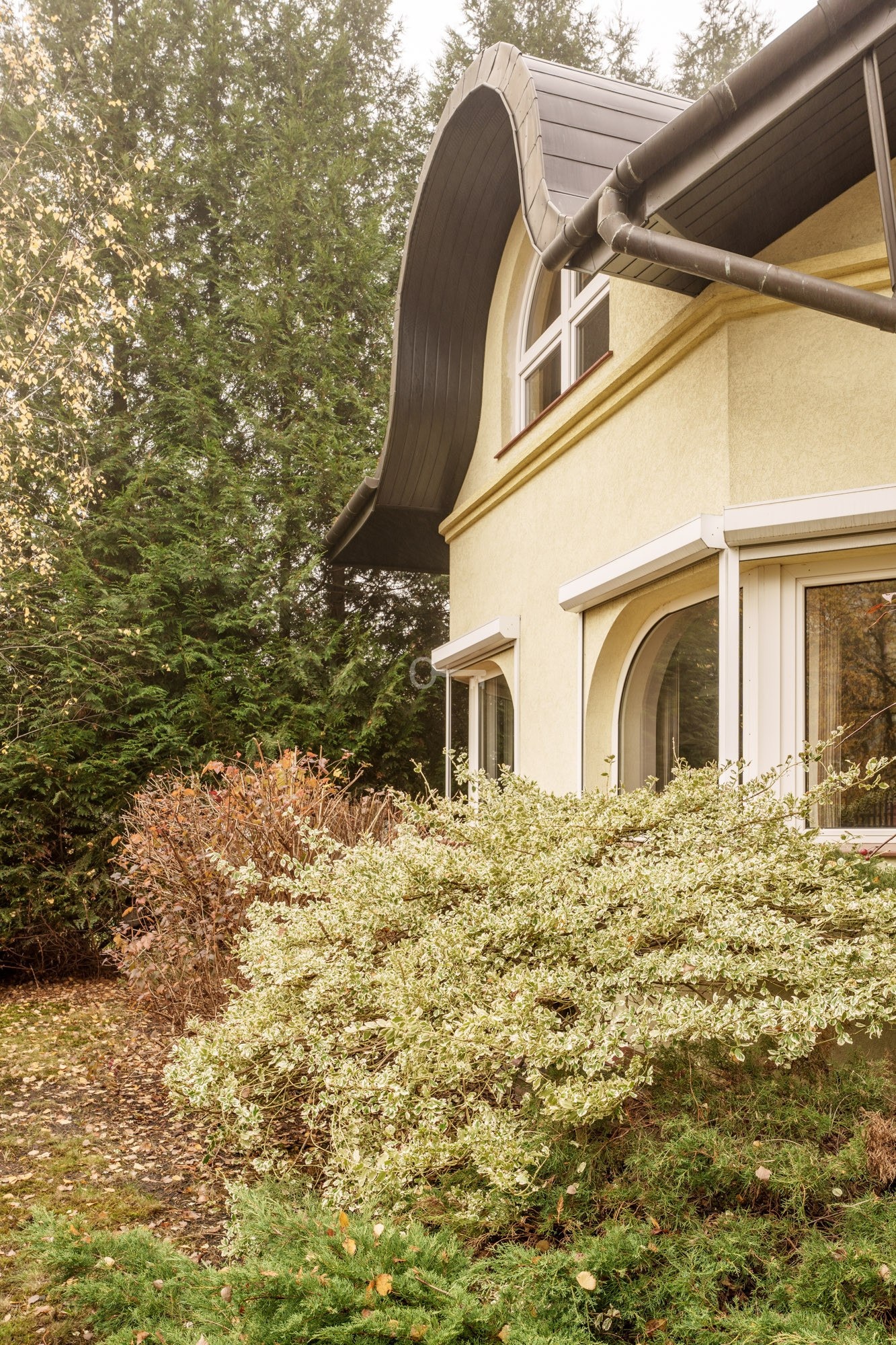 The house is located in a quiet, wooded area with predominantly villa, single-family housing.