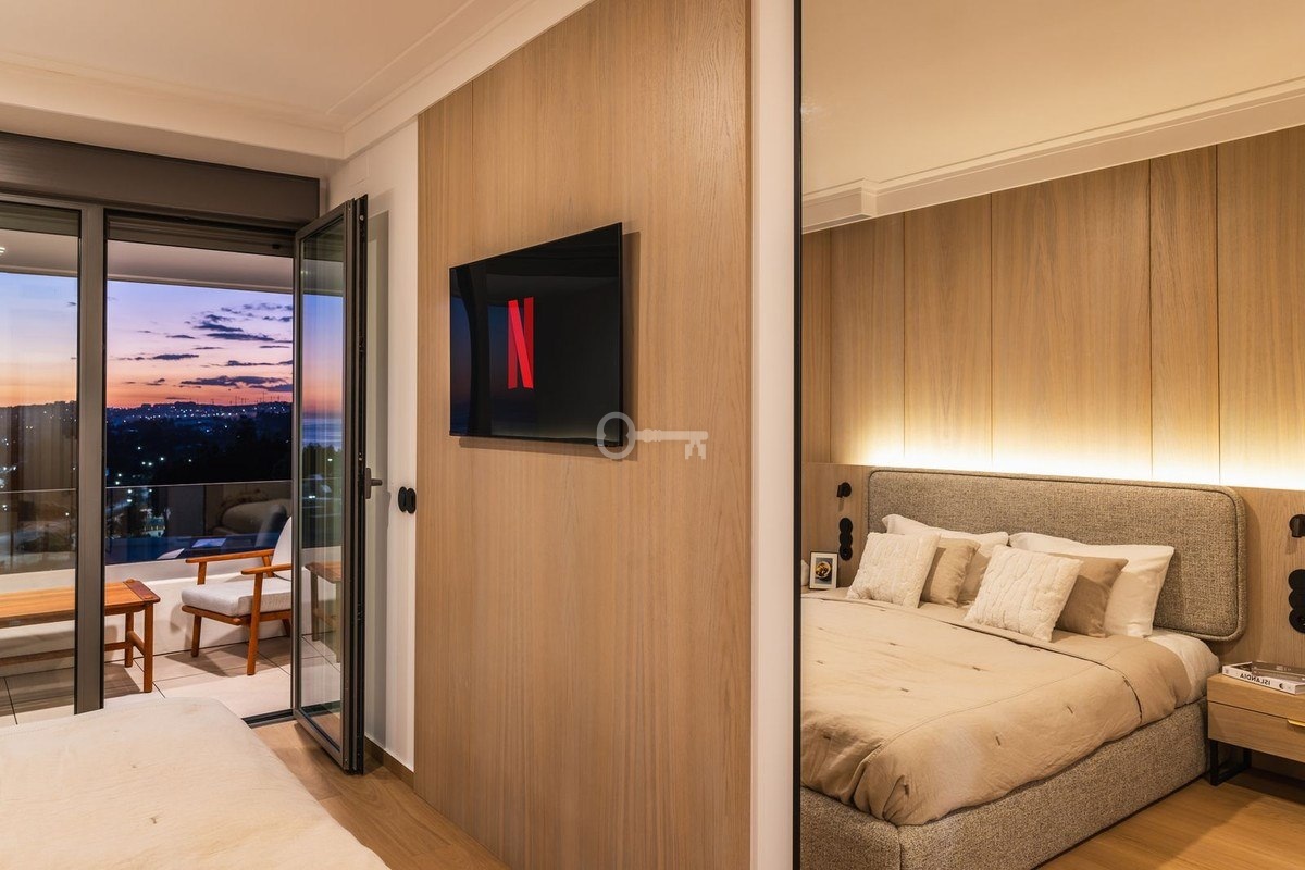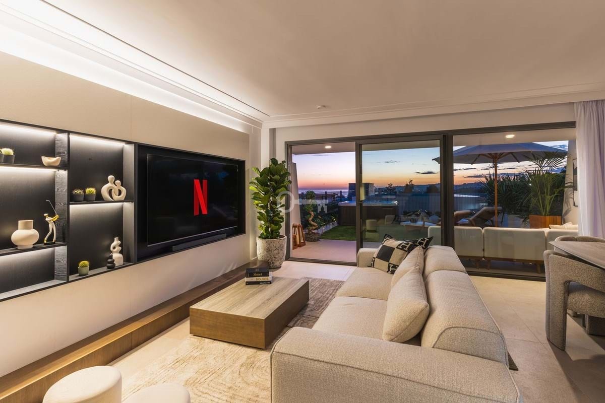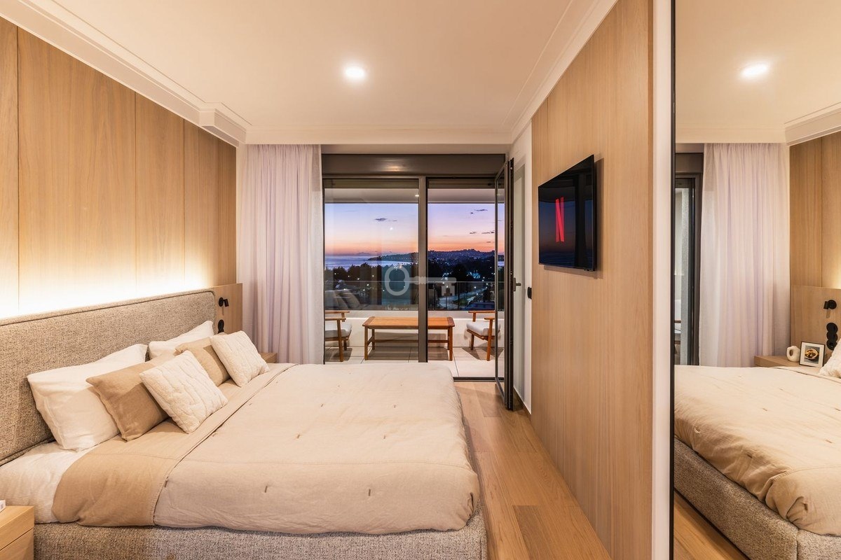 Step into a bright, spacious interior, where oversized triple-aspect windows flood the space with natural light and frame panoramic views of the Mediterranean. The open-plan layout features a state-of-the-art, custom-fitted kitchen and a beautifully styled living area that opens onto a large terrace with a private Jacuzzian ideal place to relax while enjoying uninterrupted sea views.