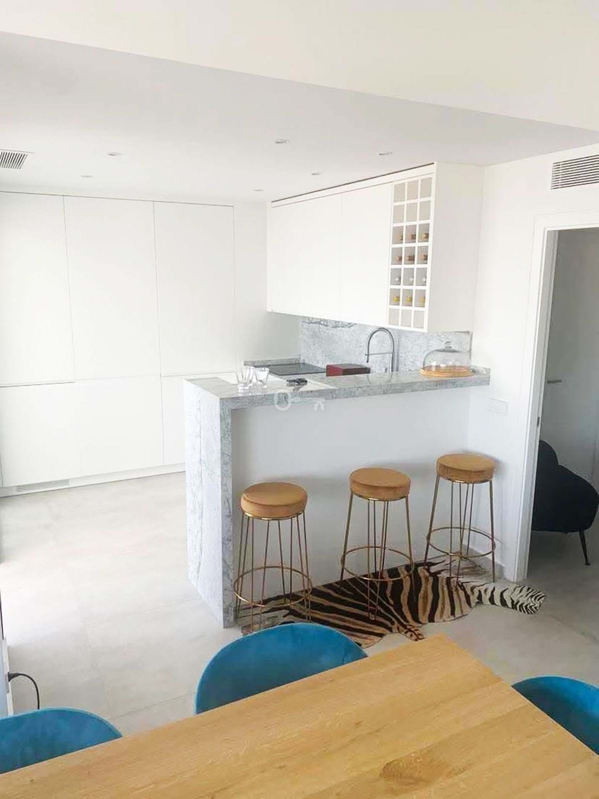 Expansive glass walls flood the interiors with natural light and offer breathtaking sea views from every corner of the home. The modern, fully equipped kitchen features high-end appliances and can be customized to your taste. It opens directly into the dining area, perfect for entertaining friends and family.