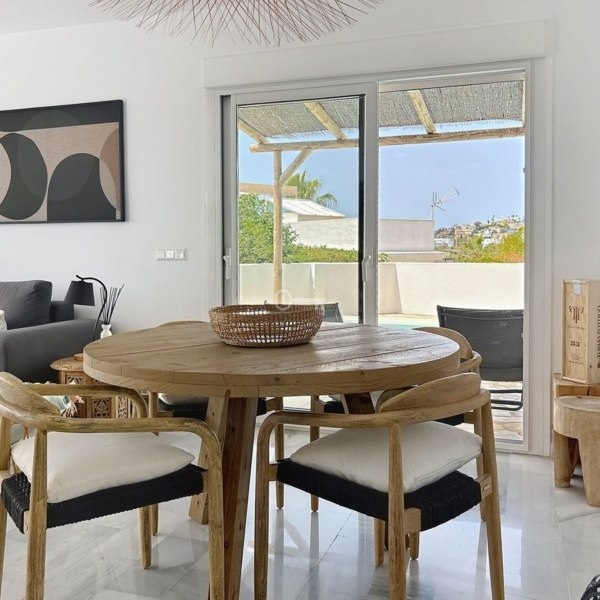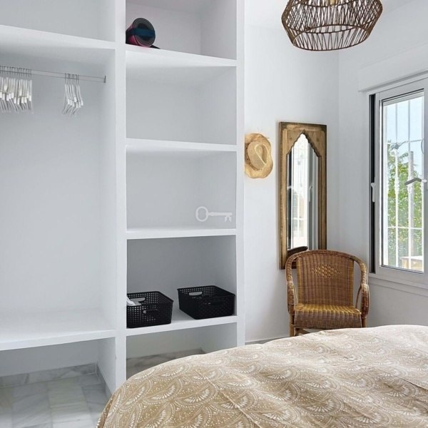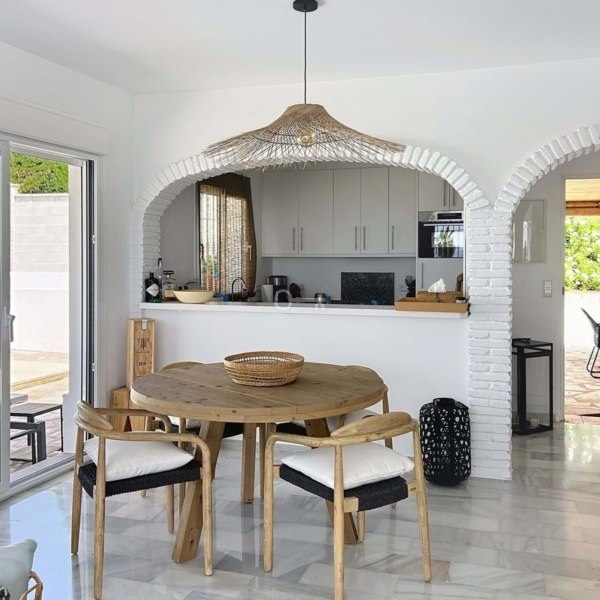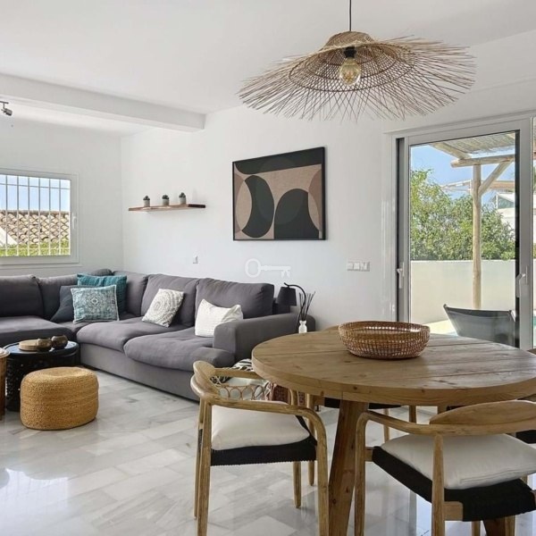 This originally authentic Andalusian villa was completely renovated with an eye for detail and exudes peace, light and space. White facades, organic shapes, natural materials and wooden accents create a harmonious atmosphere.