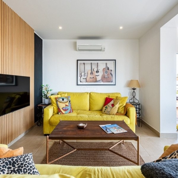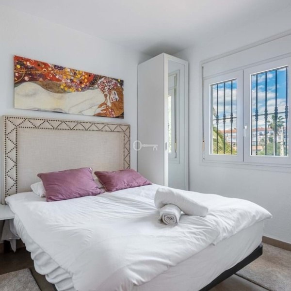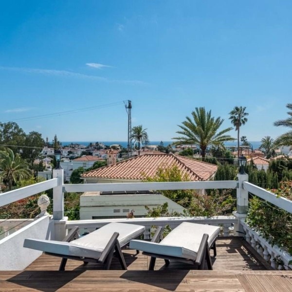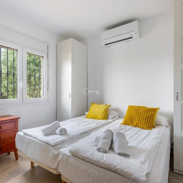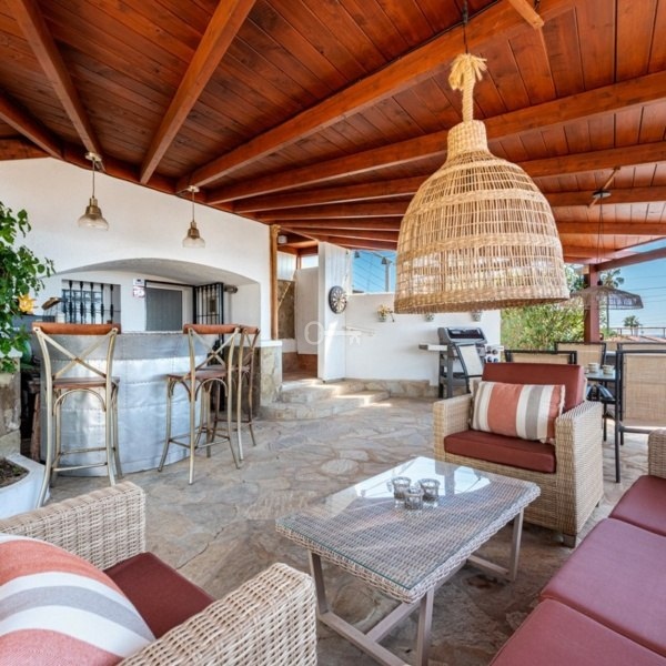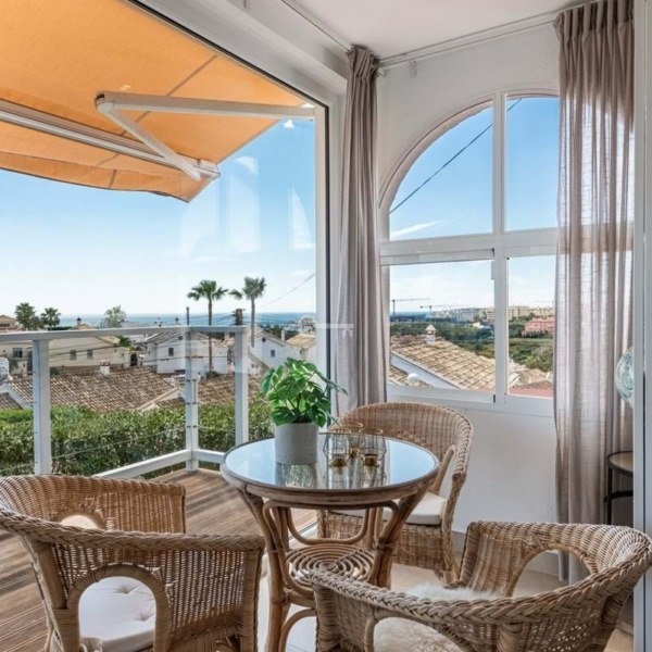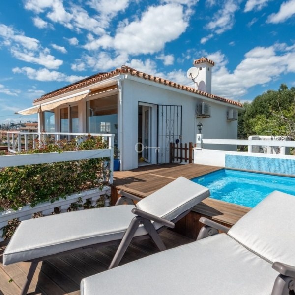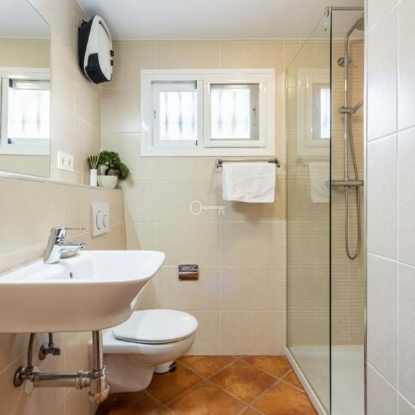 It has 3 bedrooms, 2 bathrooms, a beautiful terrace with stunning sea views with a small splash pool and a covered terrace in southwest with a lot of space for family and friends.