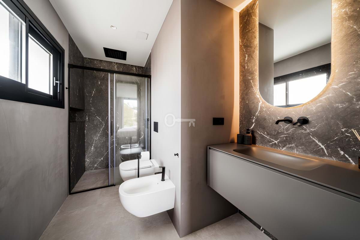 – Air conditioning installation (Mitsubishi or Samsung), including outdoor and indoor units Aluminium carpentry (exterior doors and windows) with thermal bridge breaks, matte black finish, and locking systems