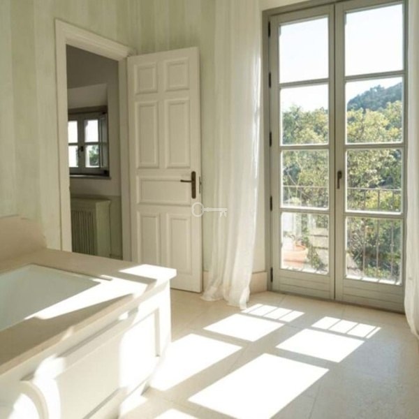 To the left, the natural beauty of the surrounding landscape, and to the right, the villa’s private courtyard.