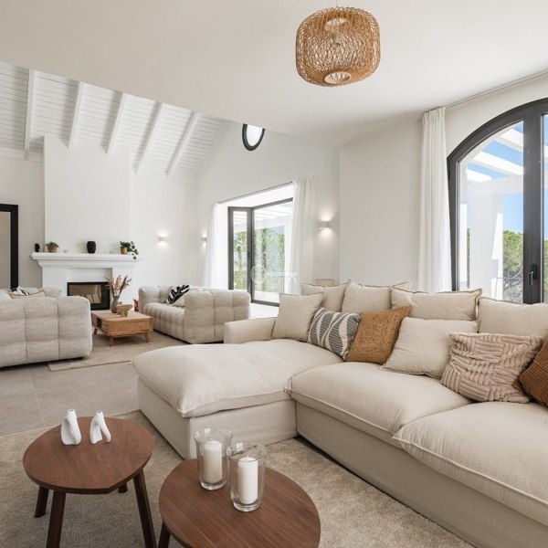 The villa features five spacious bedrooms and five well-appointed bathrooms, providing ample space and comfort for both family and guests. The fully fitted eat-in kitchen combines functionality with style, ideal for casual dining, while a separate formal dining room offers an inviting setting for entertaining. The main living room provides a comfortable and stylish space to relax, complemented by a versatile entertainment room that can be adapted to suit a range of leisure activities.