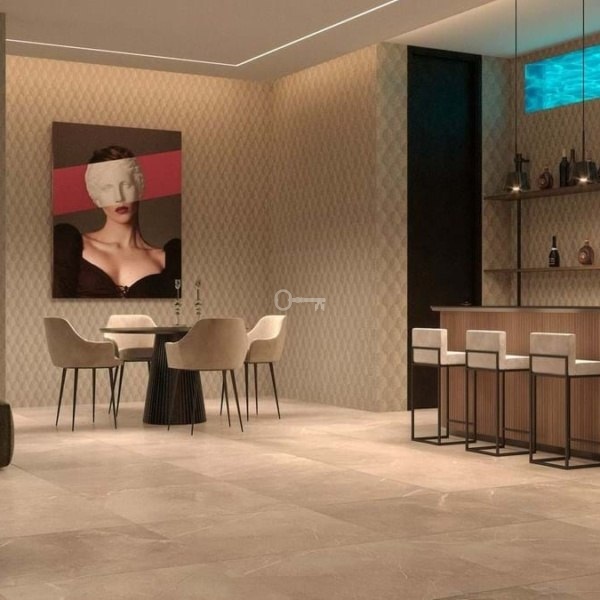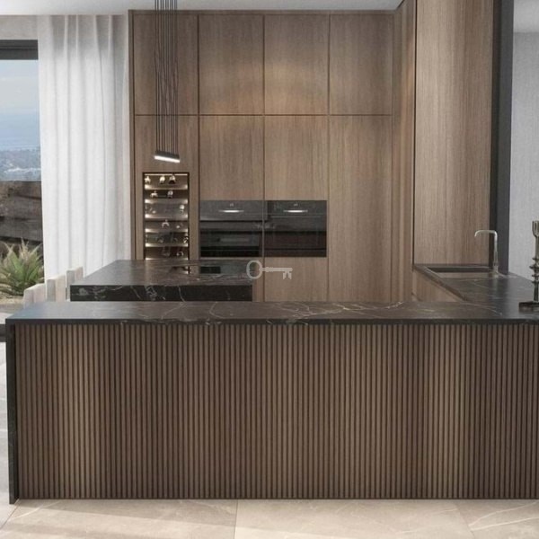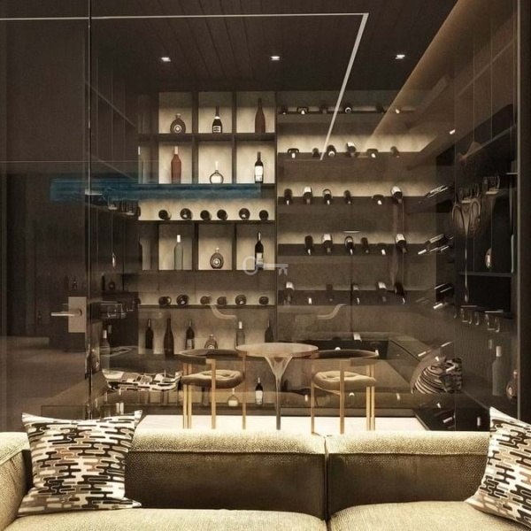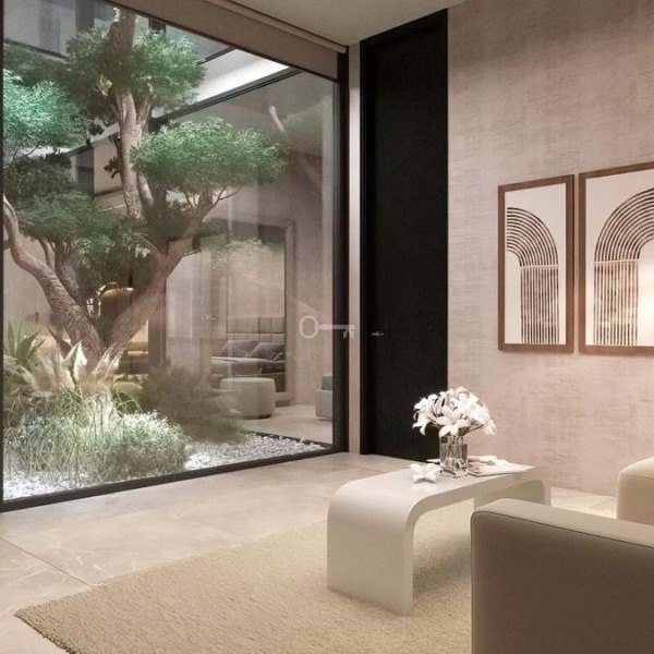 The interior design of the villa consists of two glass cubes, allowing for additional open space where you will find a beautiful olive tree and can enjoy smoking shisha. Thanks to floor-to-ceiling windows, the villa is very bright and filled with natural light. These windows not only flood the interior with sunshine but also feature sun protection, ensuring a comfortable and ambient atmosphere year-round.