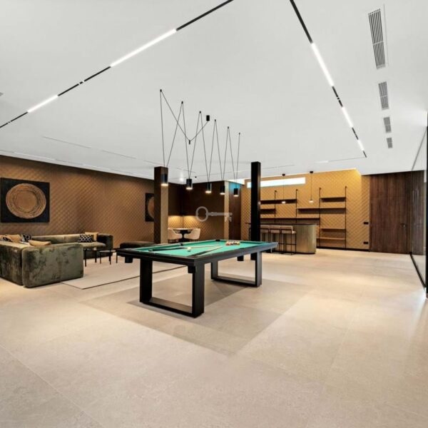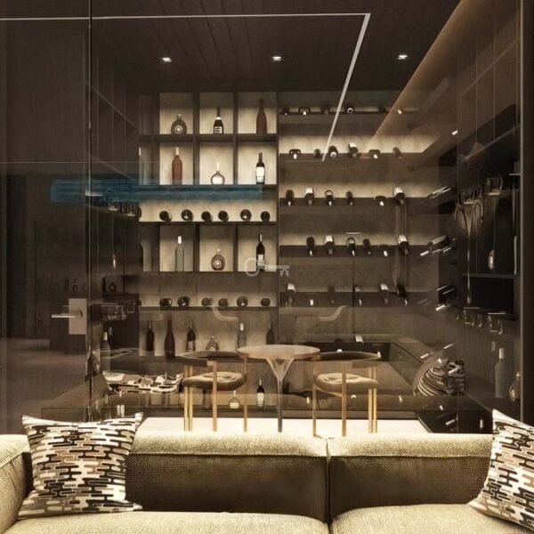 The master suite offers two en-suite bathrooms and two dressing rooms. Additional features include a staff room, laundry area, and a garage for four cars. The villa also comes with the latest OLED TV and a BOSE sound system with AI integration.